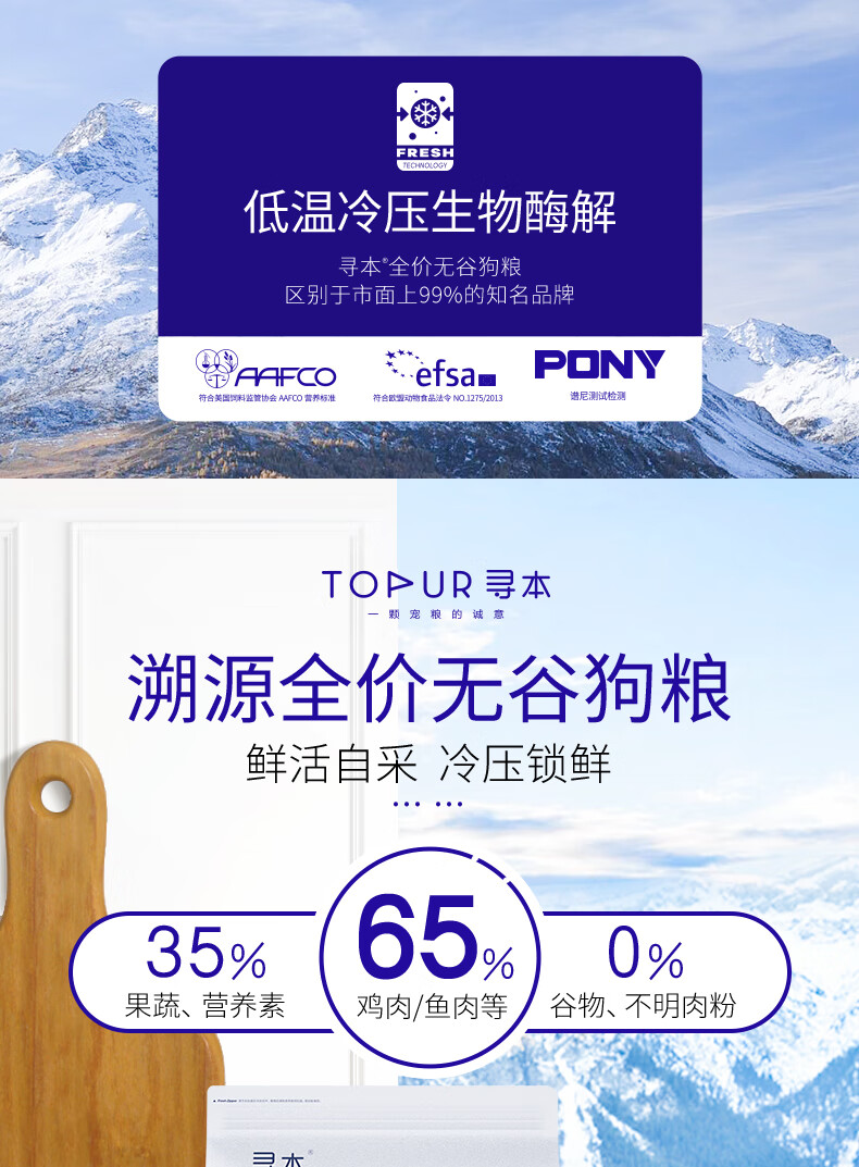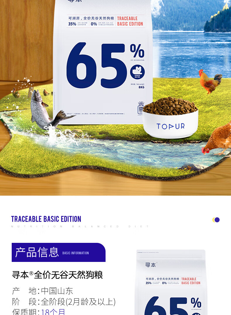 寻本65%无谷全价狗粮8kg幼犬成犬泰迪法斗金毛通用型国产冷压狗粮 [经典款]65%全期狗粮 8kg
