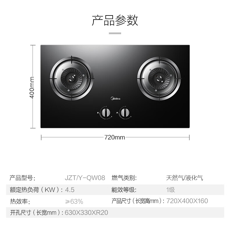 美的(Midea)燃气灶家用双灶天然气灶 大火力灶具液化气灶煤气灶猛火灶双灶台式嵌入式双眼灶 国家补贴 【热卖推荐】4.5KW火力QW08 天然气