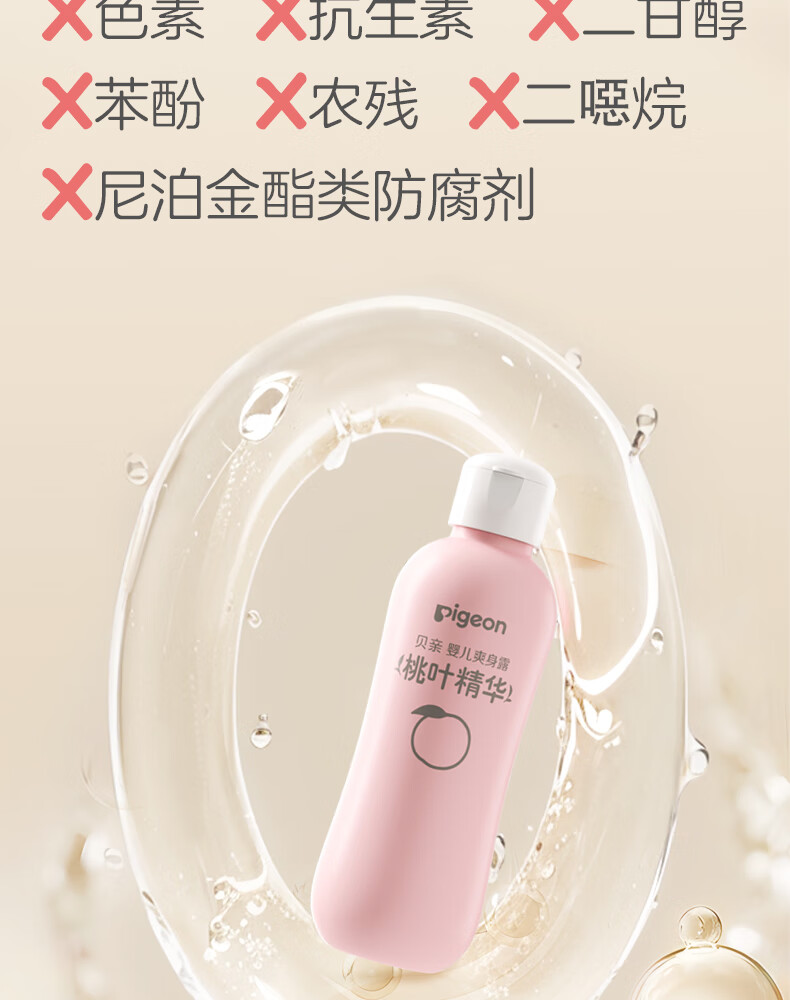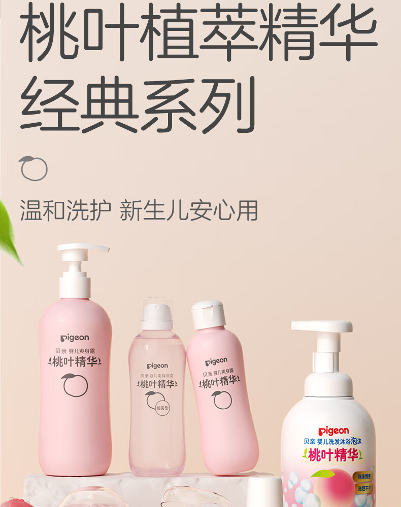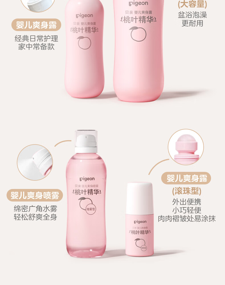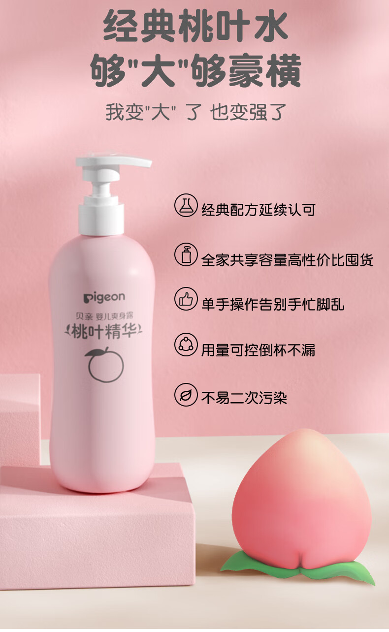 贝亲(Pigeon)桃叶精华 婴儿液体爽身露 家庭装 四季通用 480ml IA286