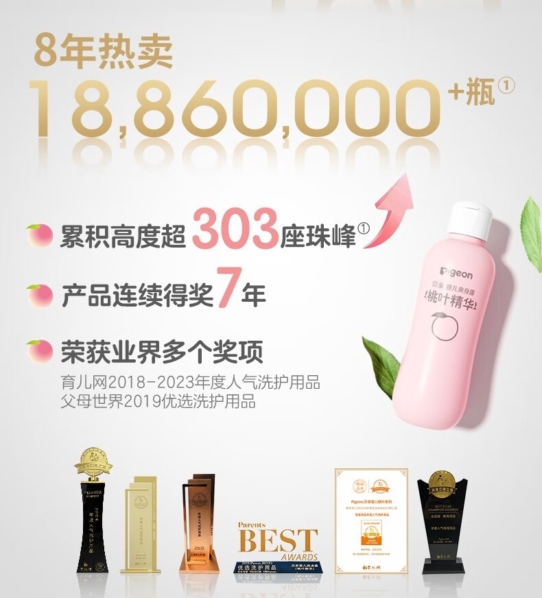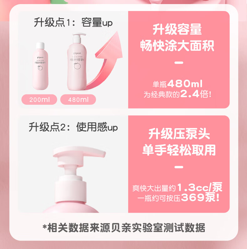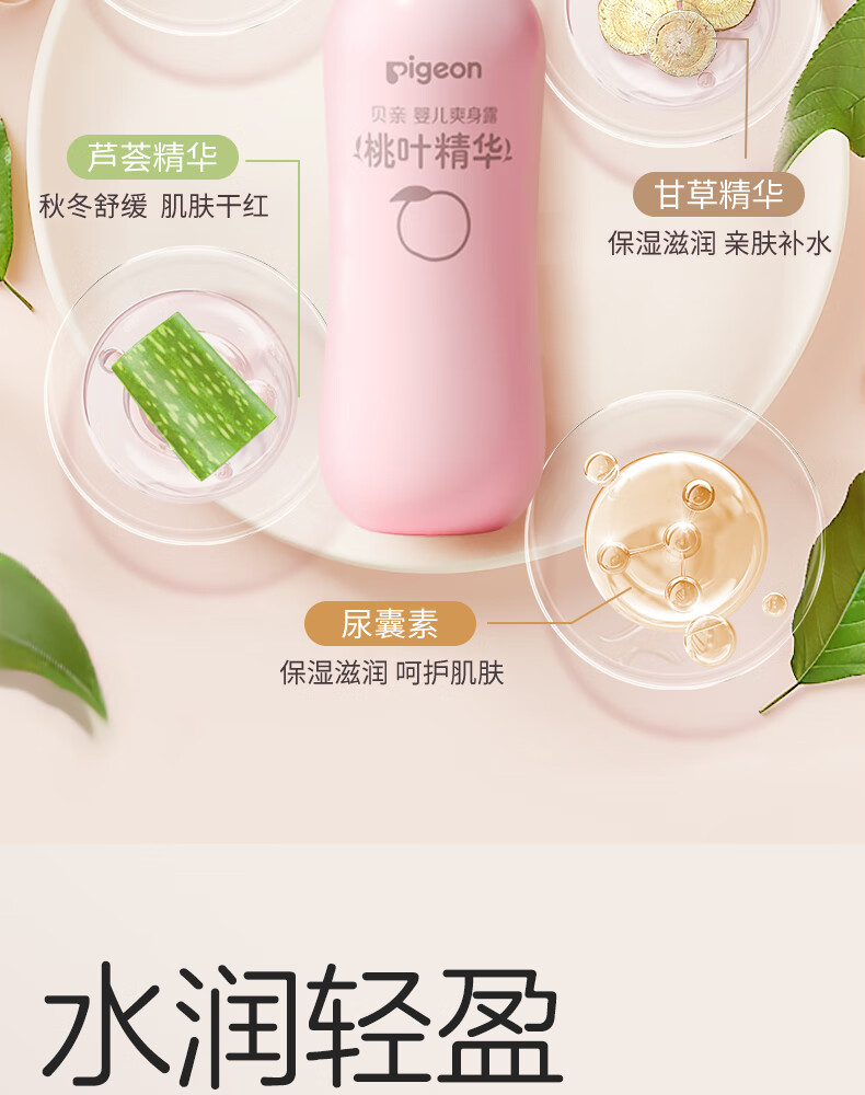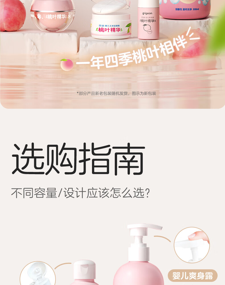 贝亲(Pigeon)桃叶精华 婴儿液体爽身露 家庭装 四季通用 480ml IA286