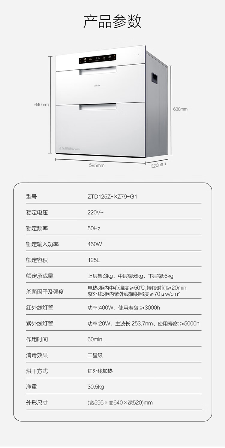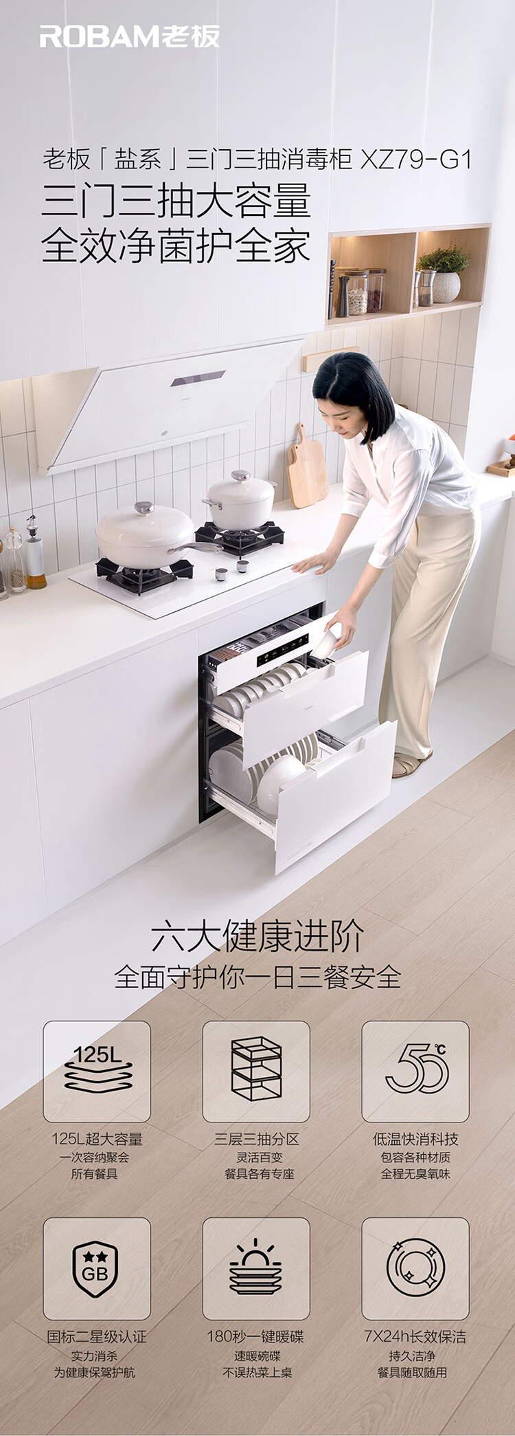 老板(Robam)盐系XZ79-G1厨房碗筷婴儿奶瓶家用大容量嵌入式紫外线消毒碗柜烘干消毒一体机二星【国家补贴】
