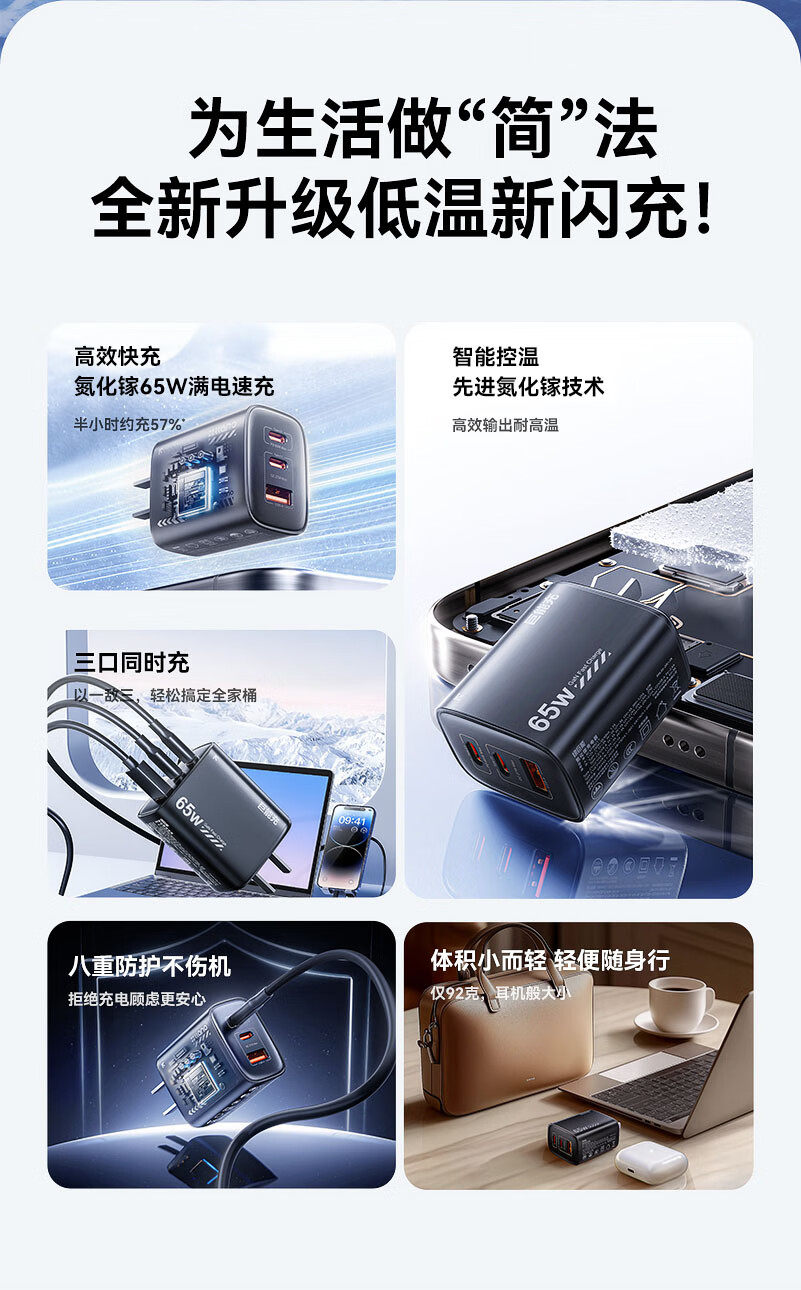 绿巨能(llano)65w氮化镓充电器笔记本电脑手机type-c线套装PD快充头适用MacBook小米华为荣耀联想苹果电源适配器