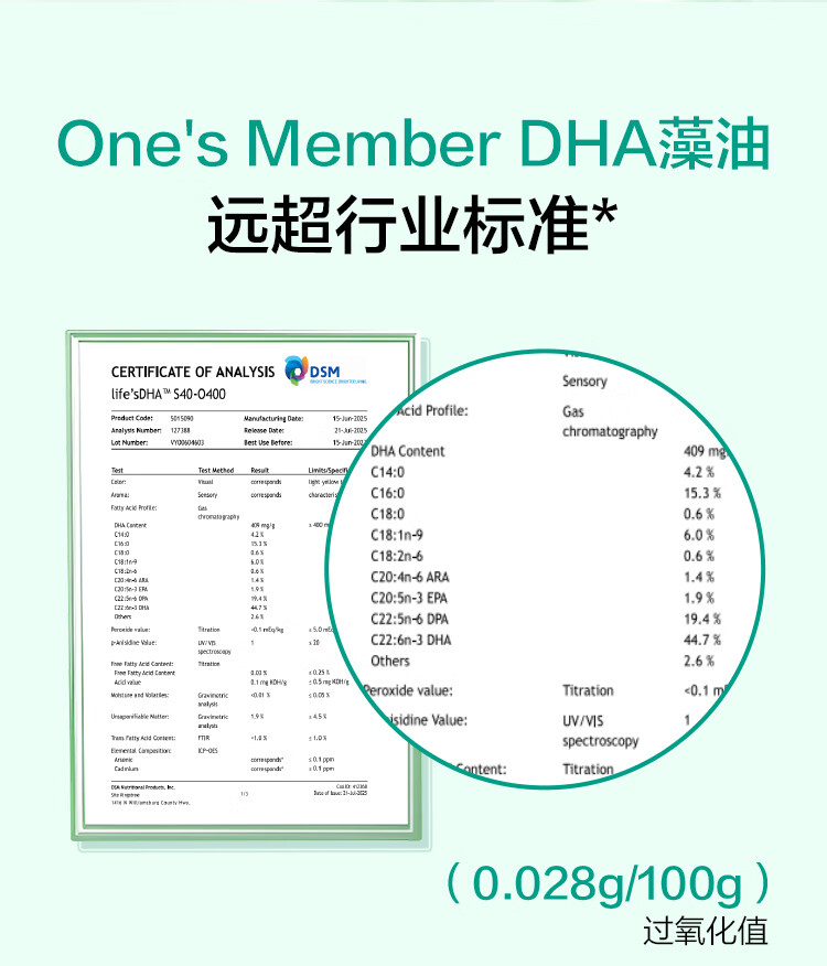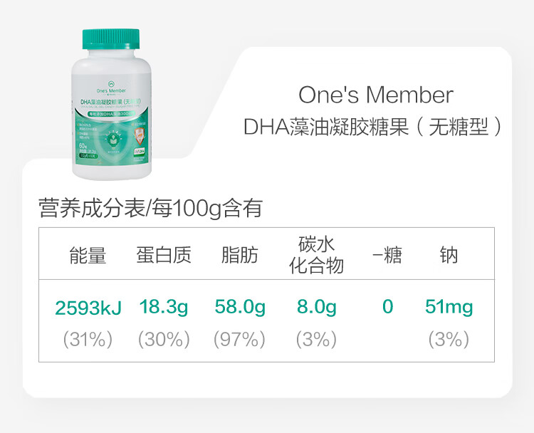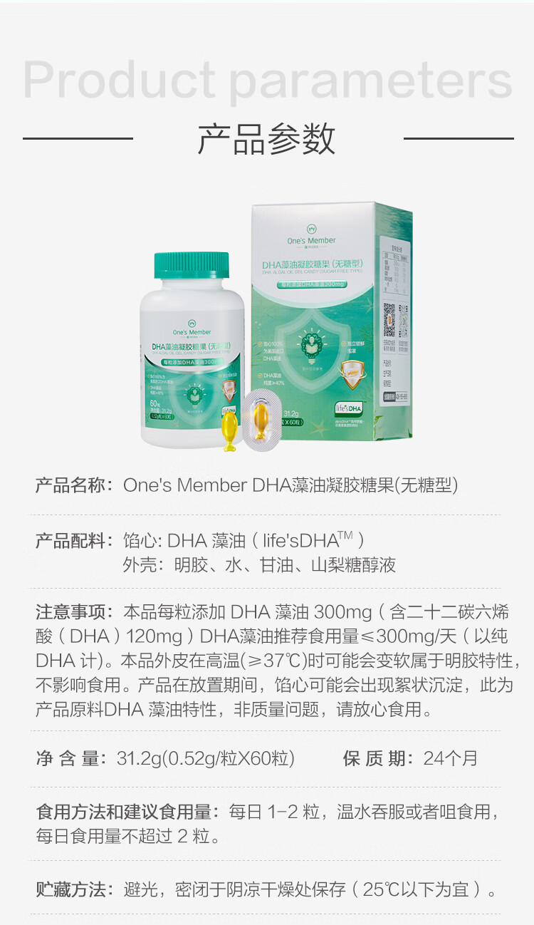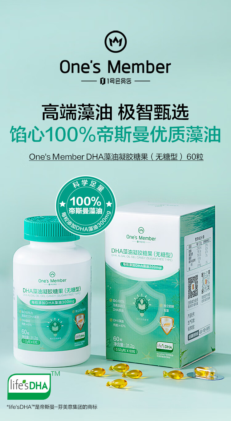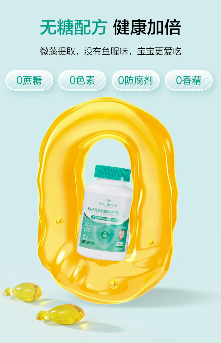 1号会员店(One's Member)DHA藻油60粒 婴幼儿童学生孕产眼脑营养高含量帝斯曼dha 美国进口