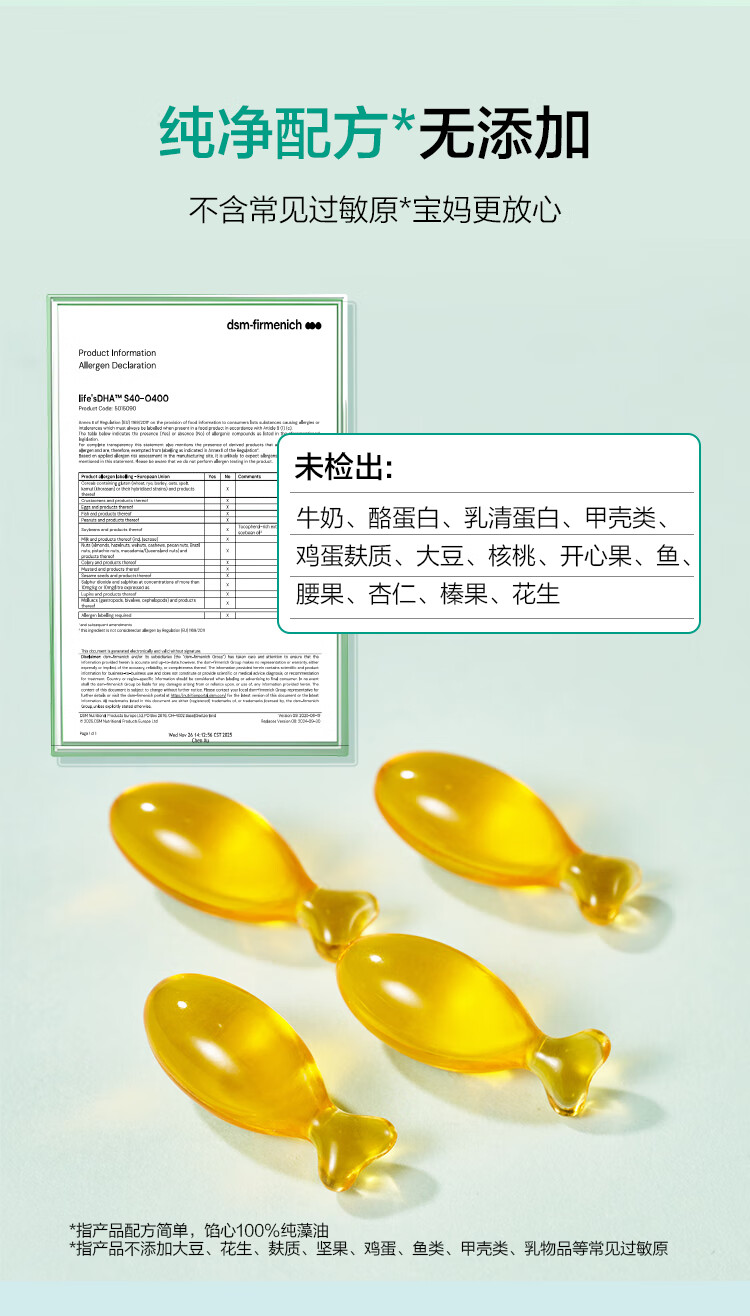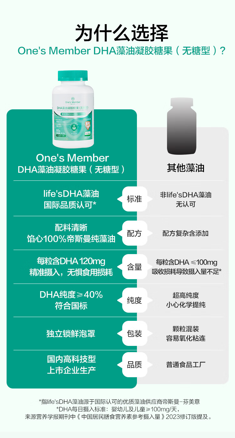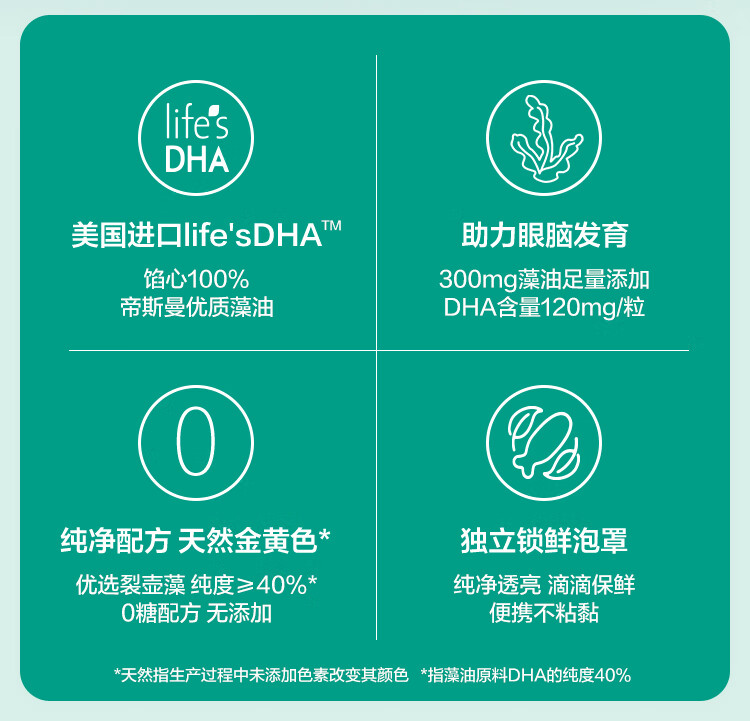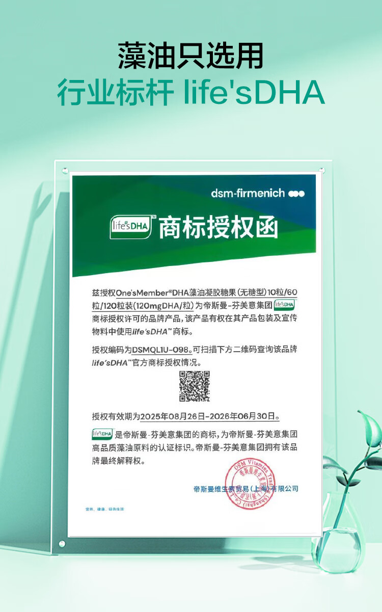 1号会员店(One's Member)DHA藻油60粒 婴幼儿童学生孕产眼脑营养高含量帝斯曼dha 美国进口