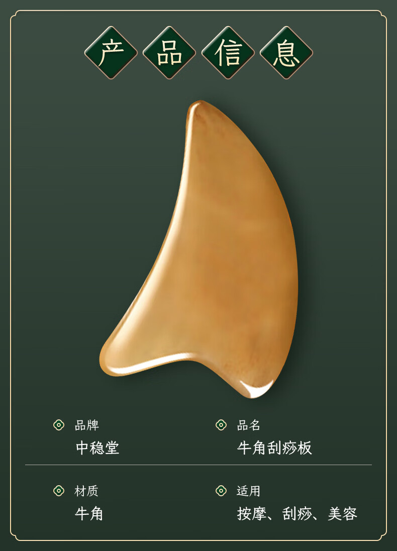 中稳堂牛角刮痧板经络刷面部脸部提拉颈背腿部全身按摩神器可搭刮痧精油