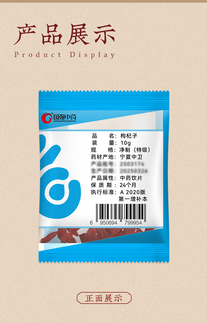 国强精制饮片 枸杞子(特级)10g/袋 中药饮片 特级宁夏枸杞 免洗枸杞 补肾养肝 泡酒泡水泡茶