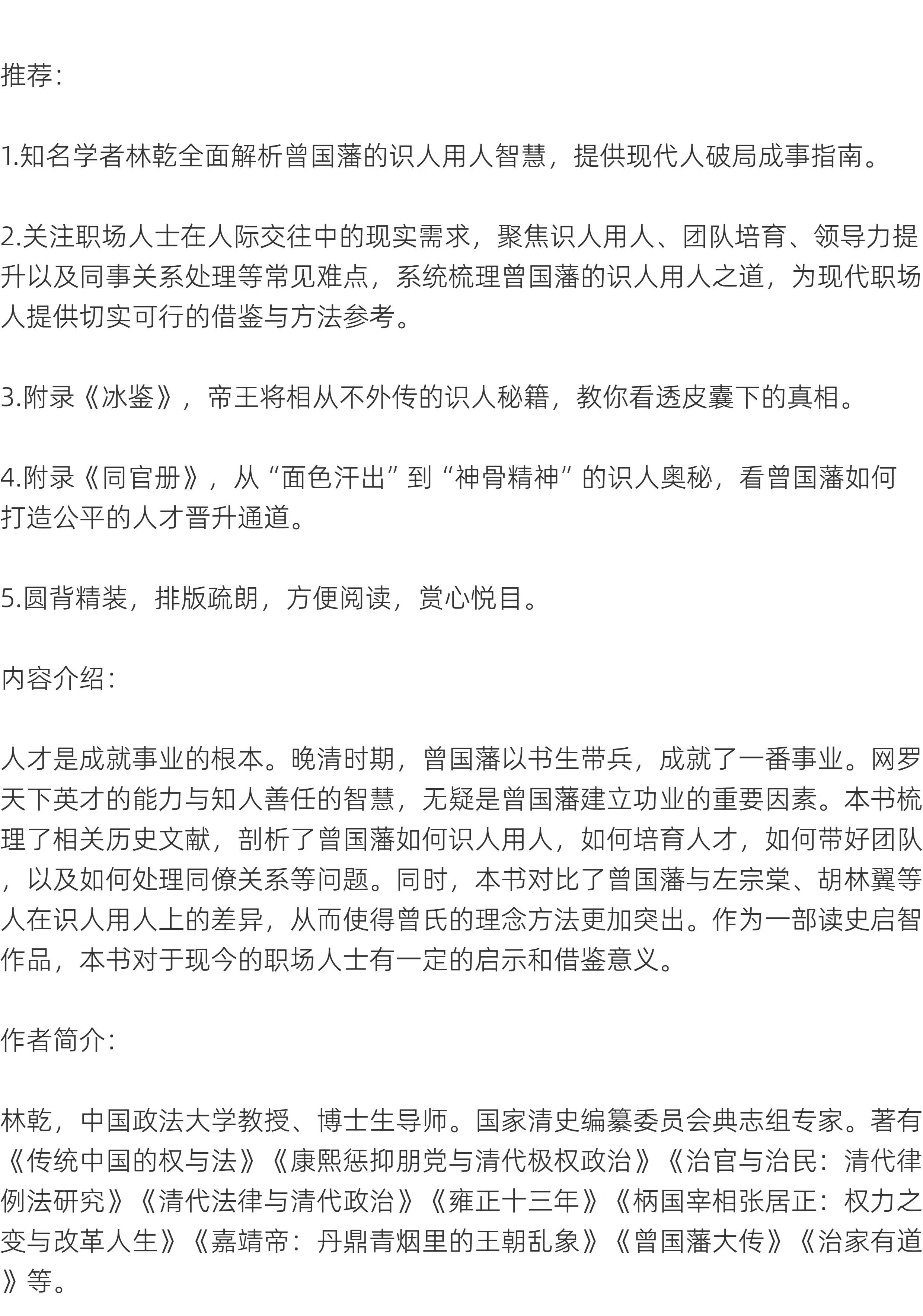 知人之明:曾国藩的用人智慧 附录冰鉴 林乾系列作品 职场识人用人之法 传统智慧历史智慧人生智慧人生哲学 传统文化国学历史人物传记 岳麓FX 知人之明:曾国藩的用人智慧 传记