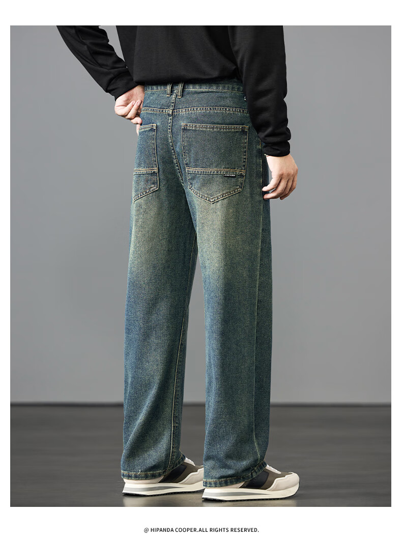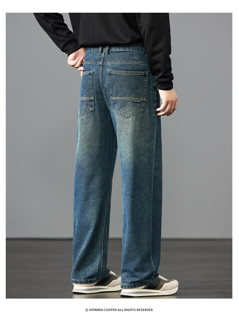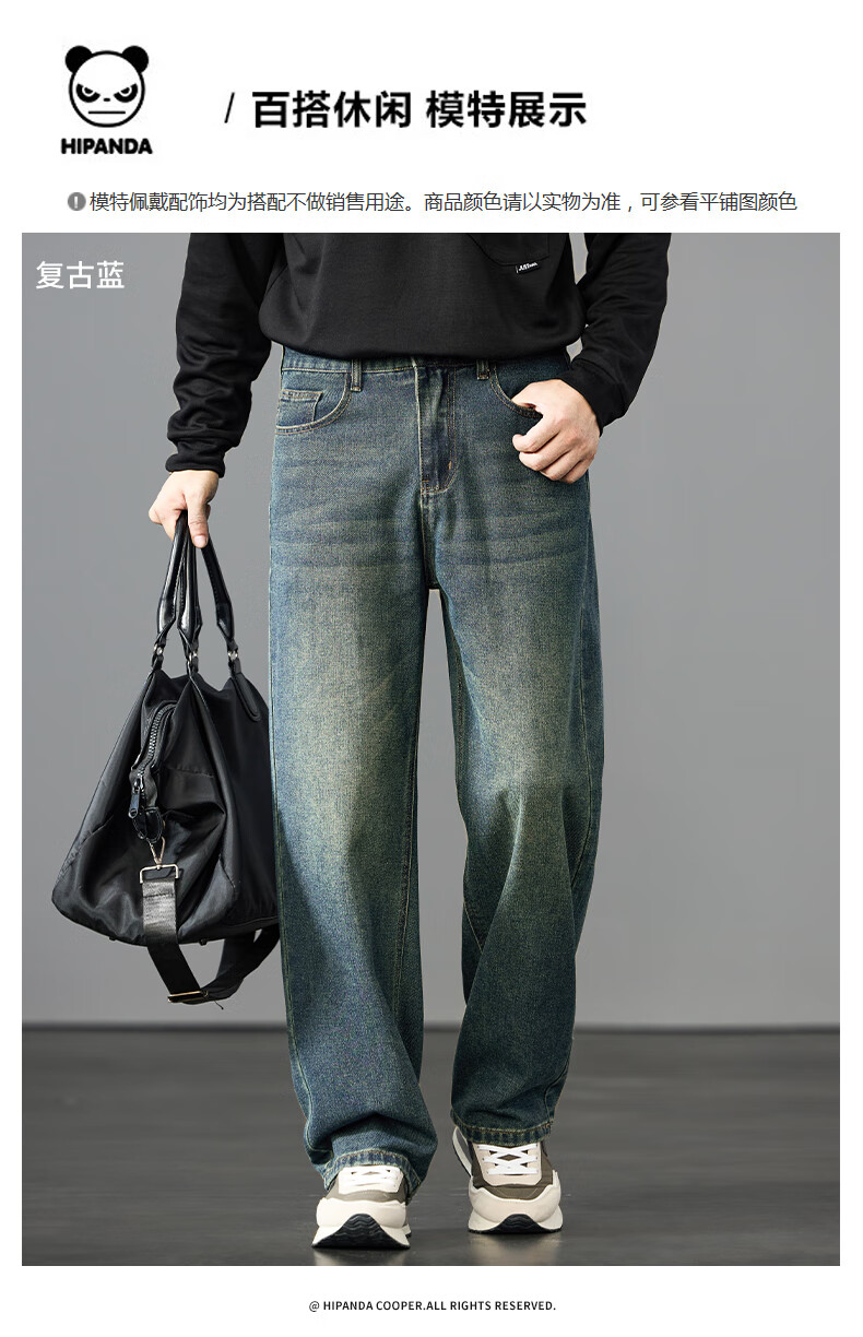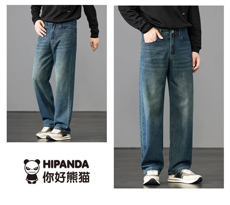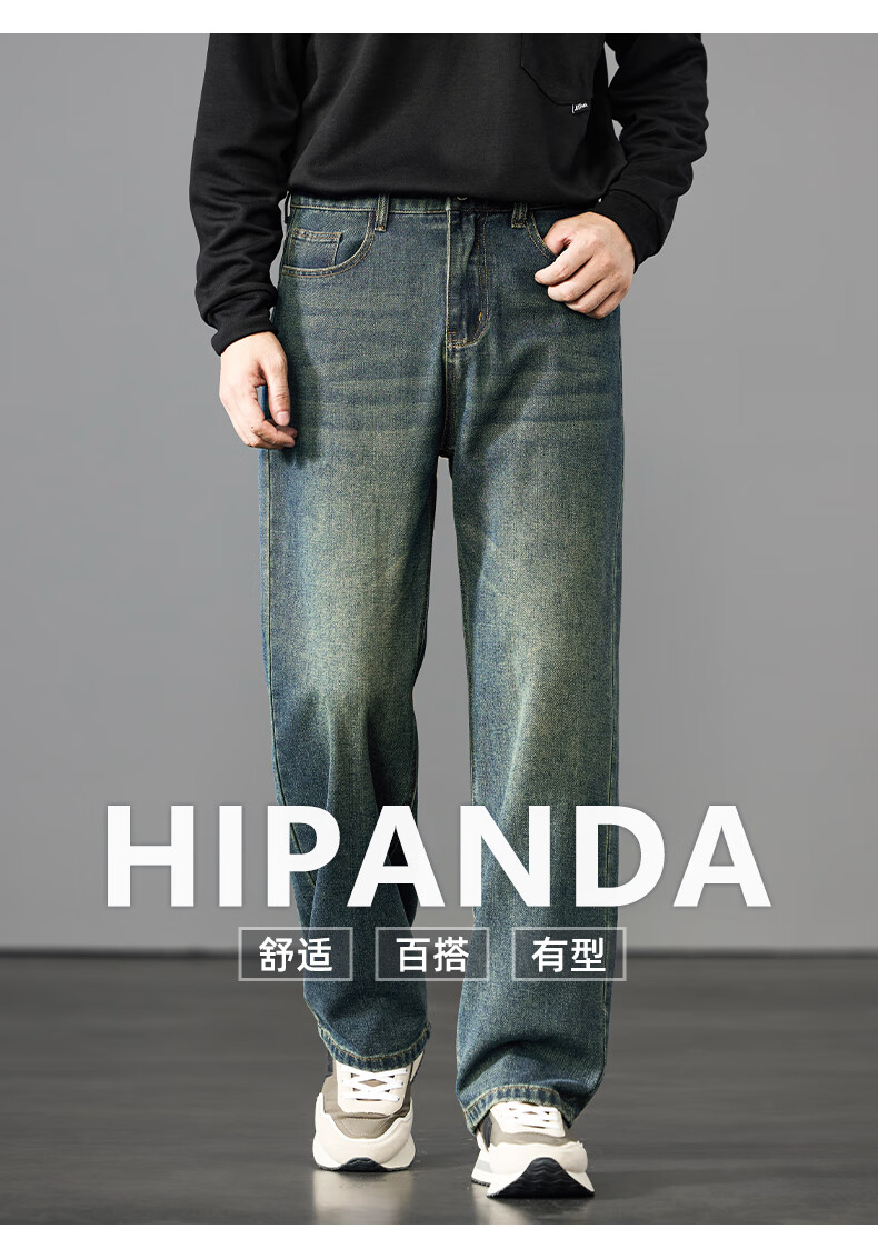 HIPANDA你好熊猫牛仔裤男2025年秋季潮牌复古宽松直筒裤休闲百搭长裤男装 蓝色 L