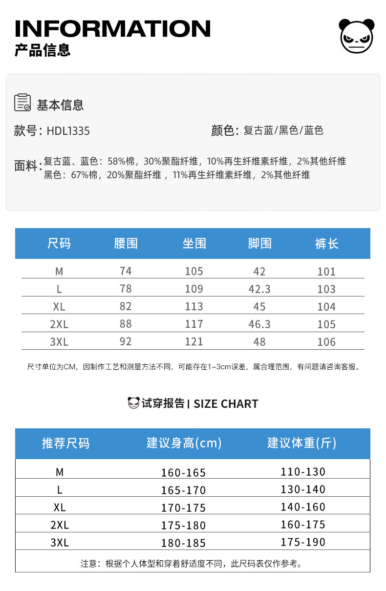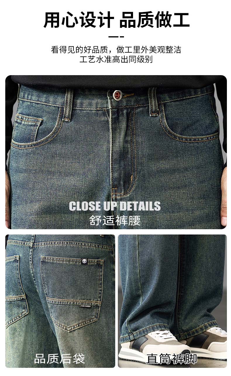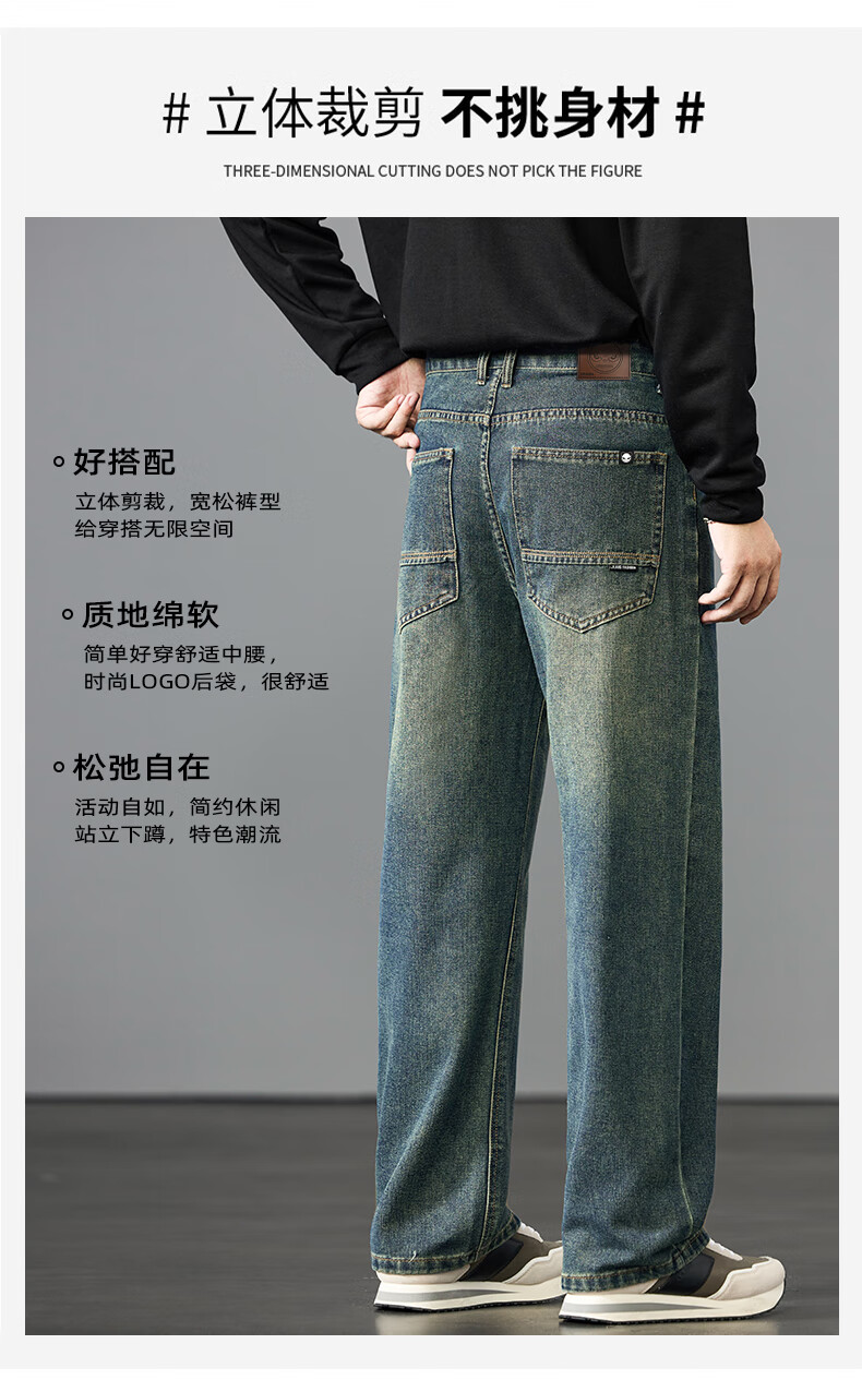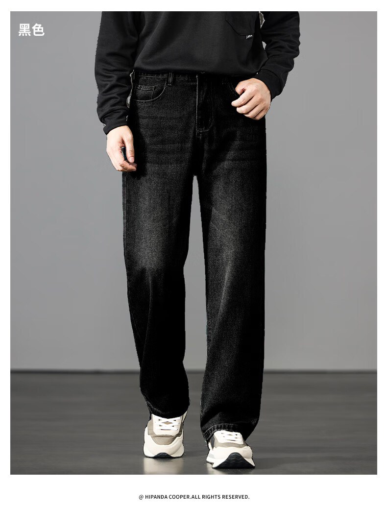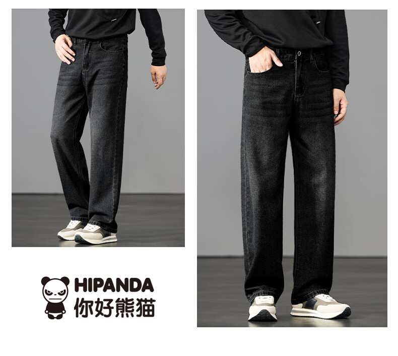 HIPANDA你好熊猫牛仔裤男2025年秋季潮牌复古宽松直筒裤休闲百搭长裤男装 蓝色 L