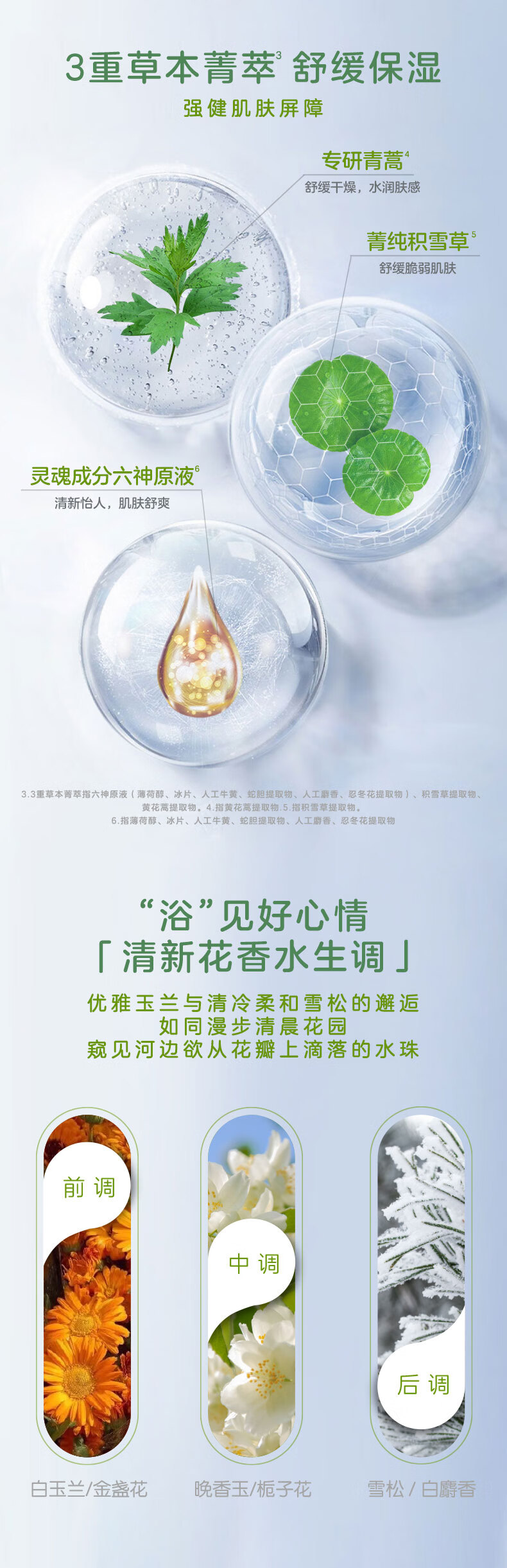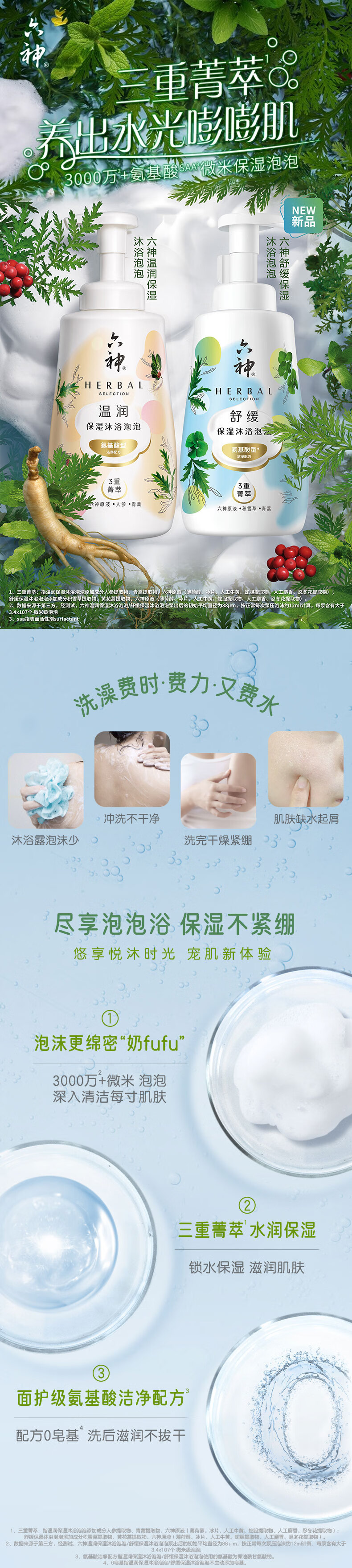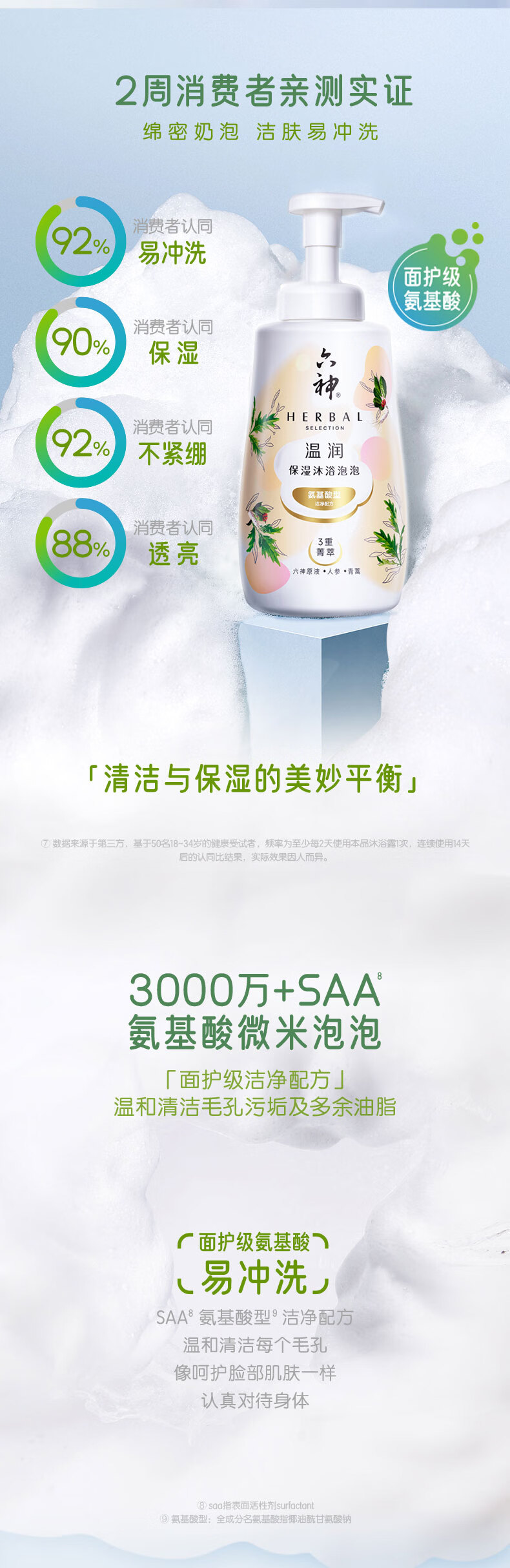 六神菁萃舒缓保湿泡泡香氛沐浴露520ml男女士氨基酸舒缓修护 清香净透