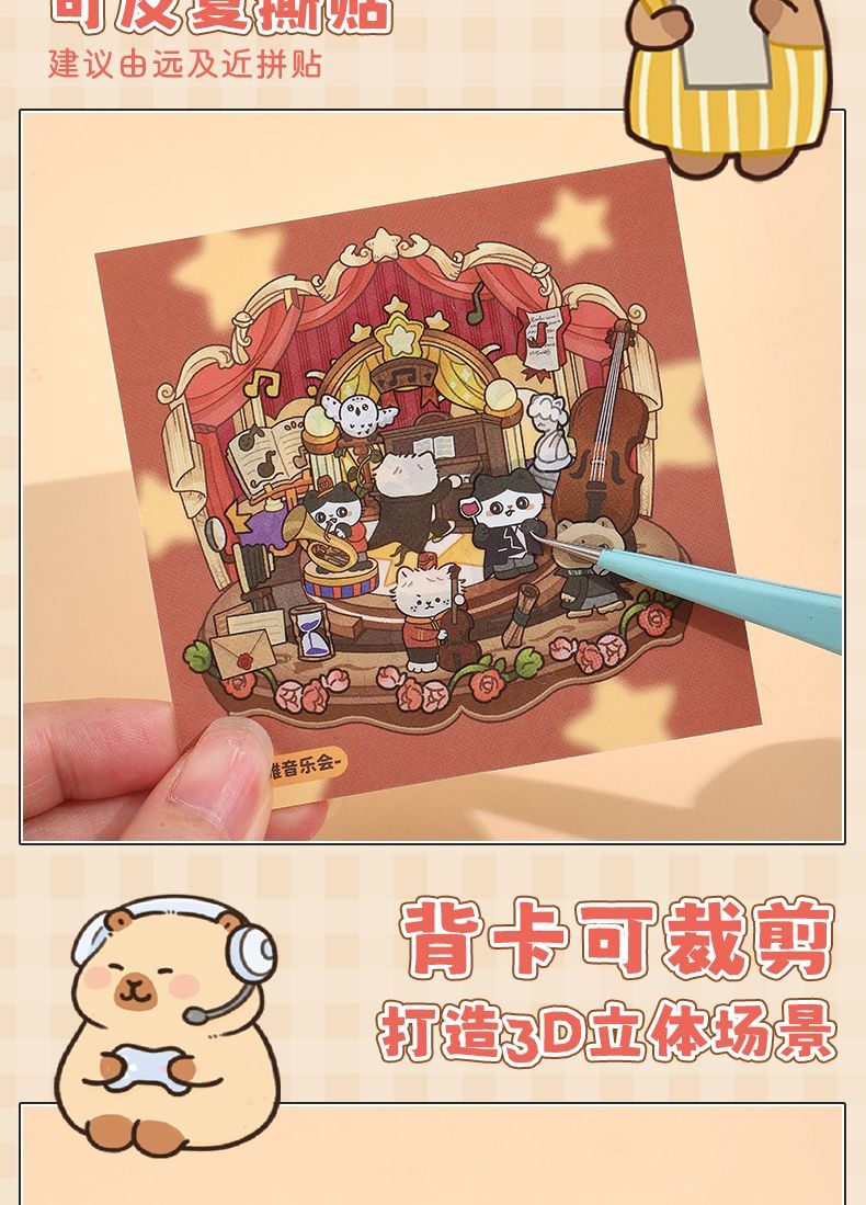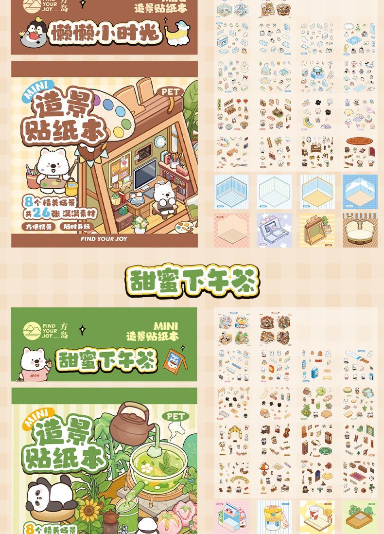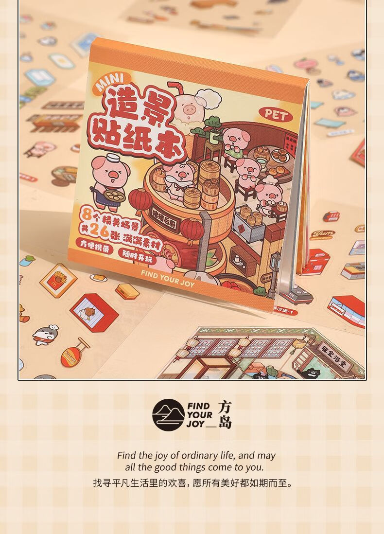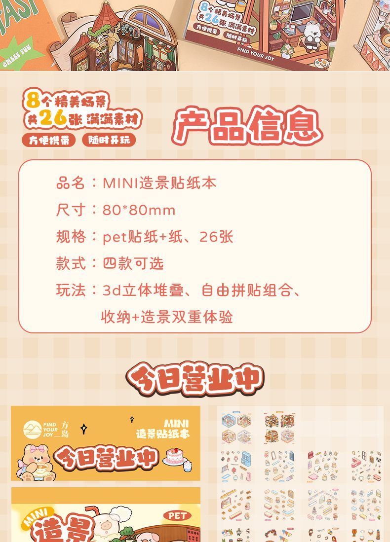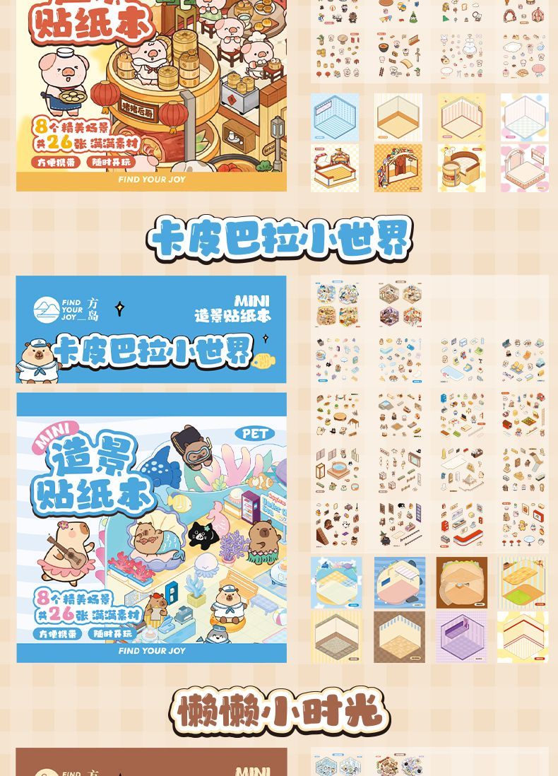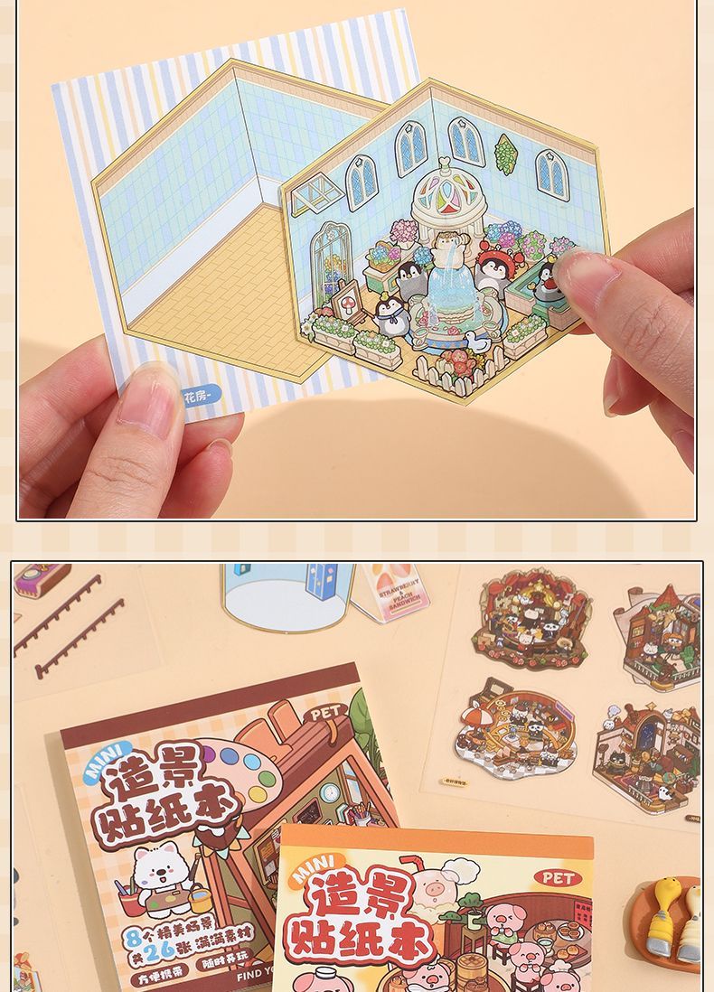嘟嘟麦8款mini模拟场景合集微缩造景贴纸本卡通3D立体屋手工diy堆叠贴画 mini造景贴纸本-全套4本
