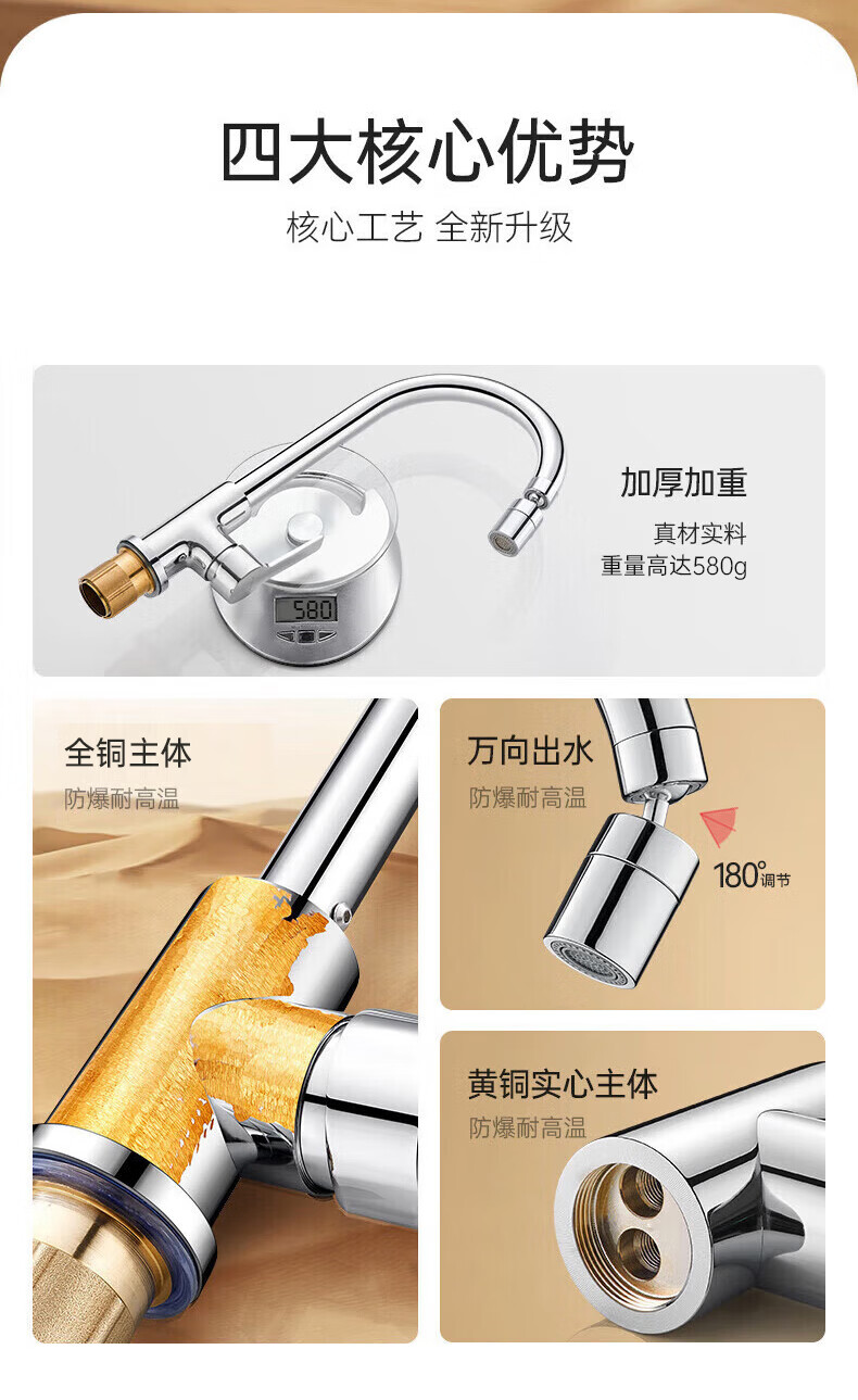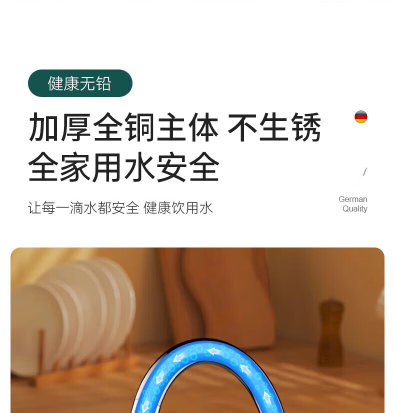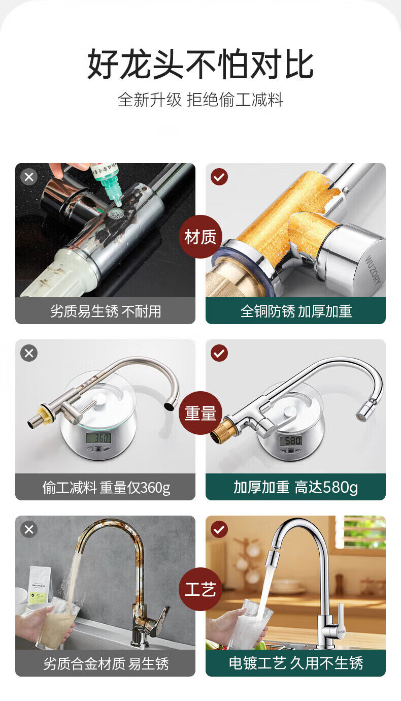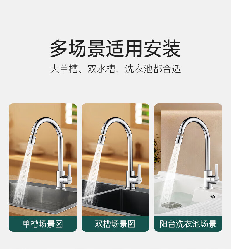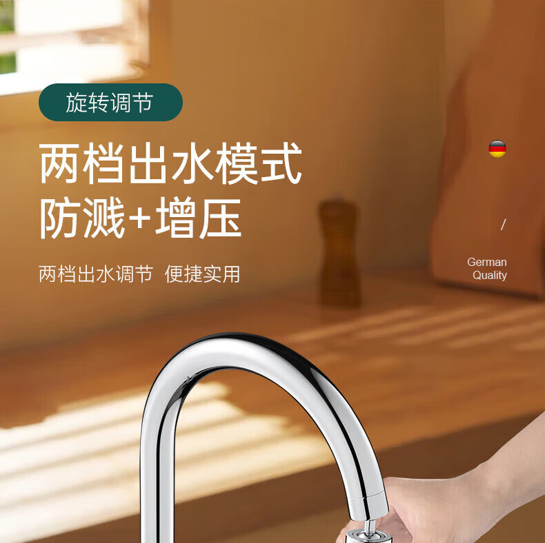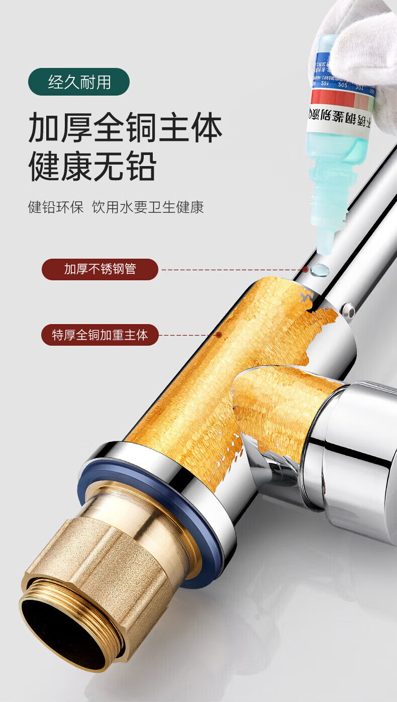 WUZORY【德国】全铜厨房水龙头冷热水二合一360°旋转防溅洗菜盆水龙头 【全铜主体】两档水龙头 全铜加厚丨配80CM防爆进水管*2
