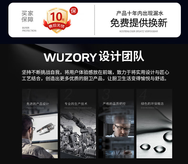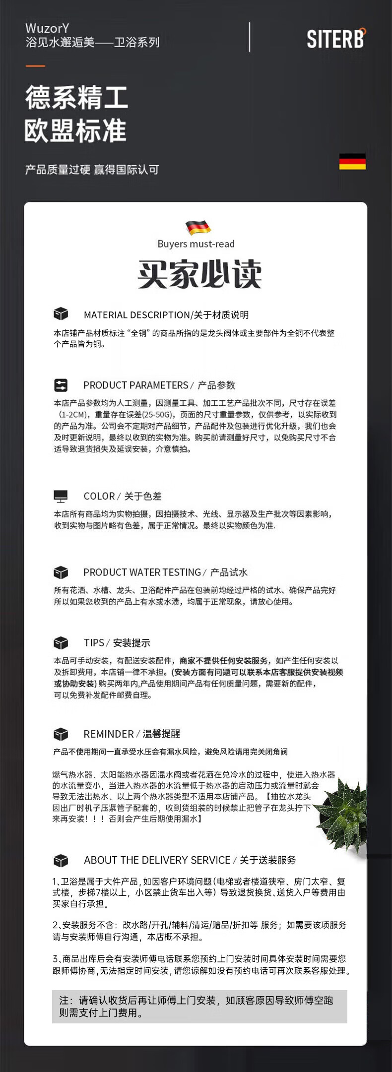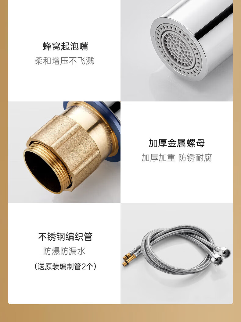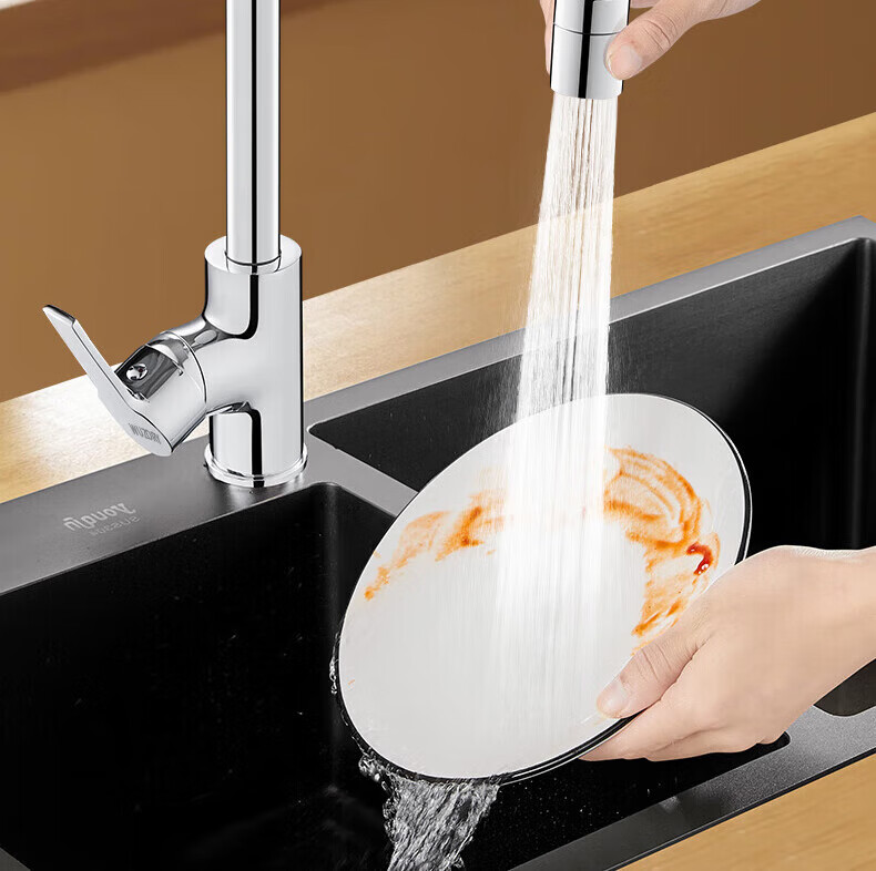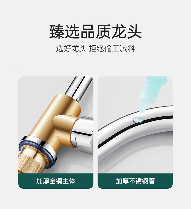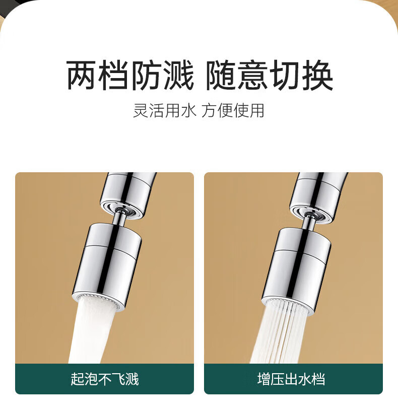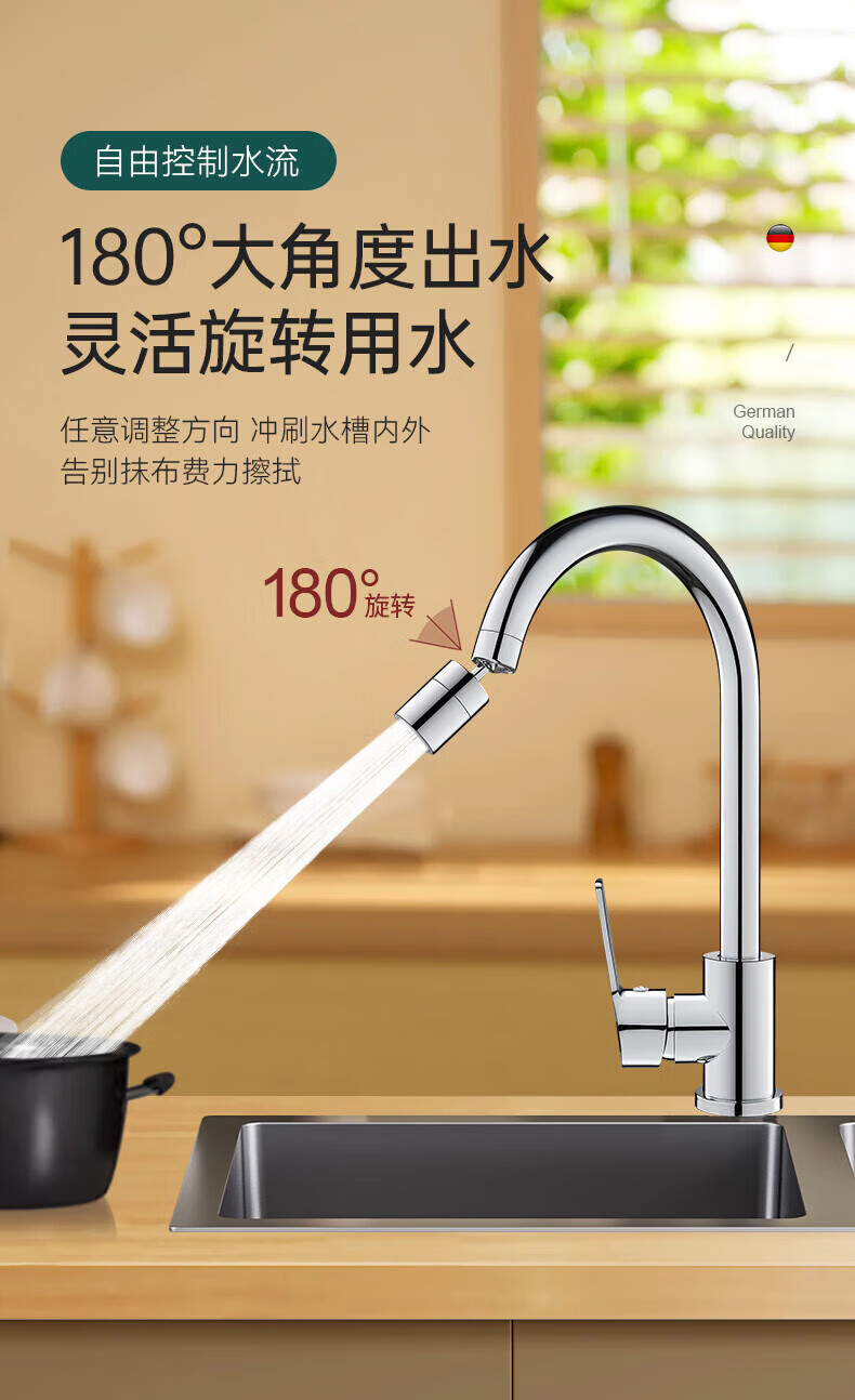 WUZORY【德国】全铜厨房水龙头冷热水二合一360°旋转防溅洗菜盆水龙头 【全铜主体】两档水龙头 全铜加厚丨配80CM防爆进水管*2