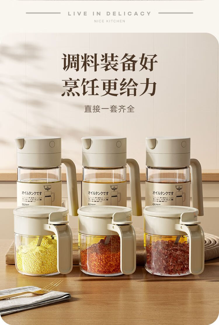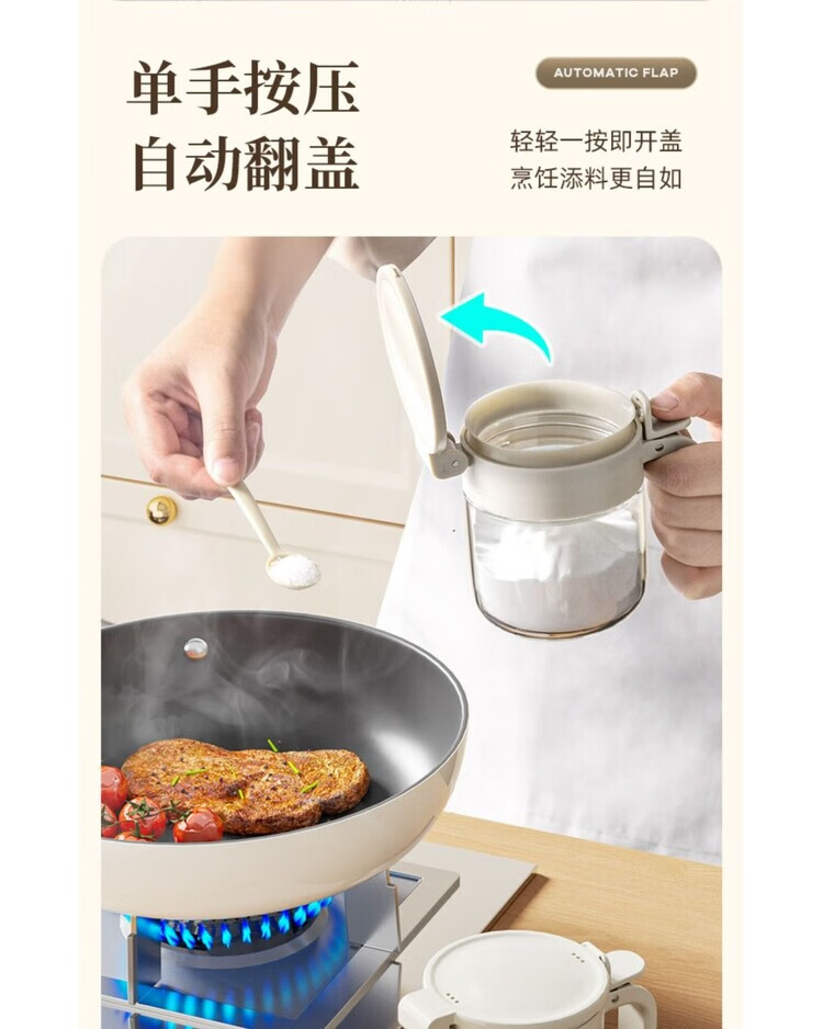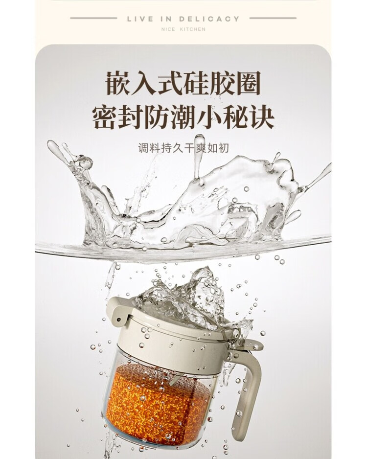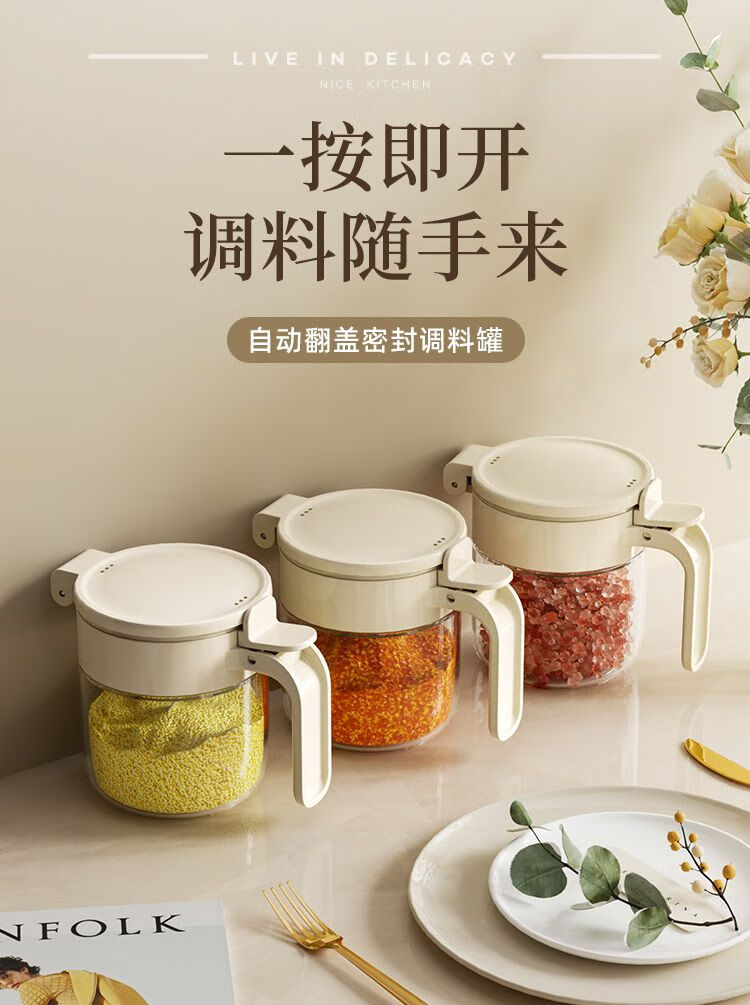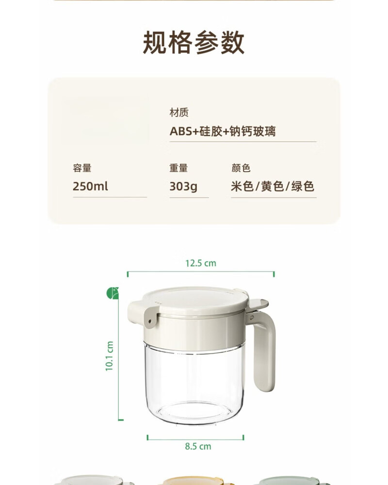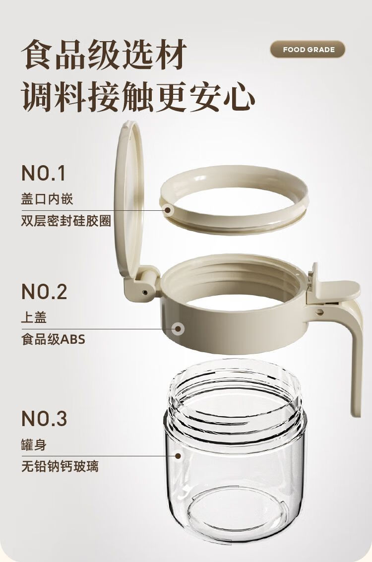 简漾调料盒厨房玻璃盐糖佐品收纳瓶子组合套装家用防潮密封味精罐 米色(单只装/带勺) 食品级选材-250ml大容量