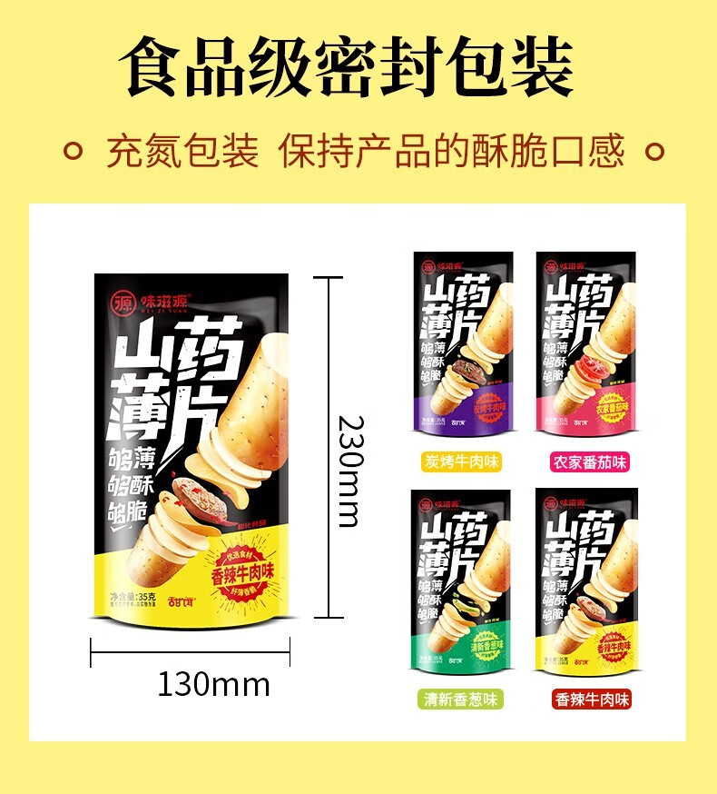 味滋源吮指薯片番茄味原味多口味薯片办公室休闲零食小吃山药片土豆片 山药薄片 口味随机(35g*5袋装) 2件