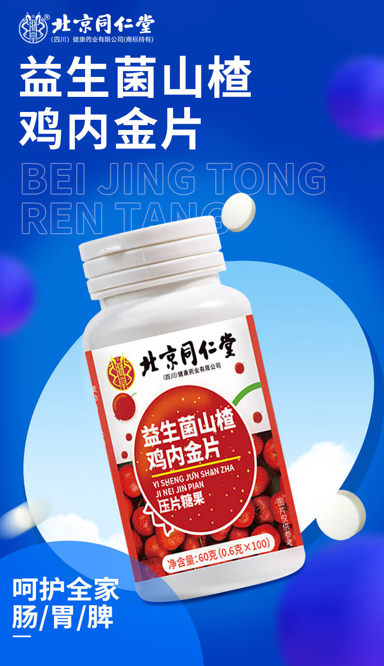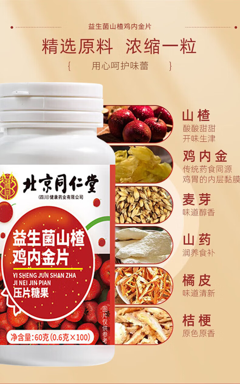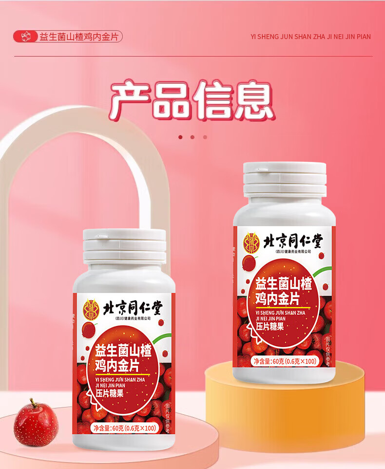 朕皇北京同仁堂益生菌山楂鸡内金片调理肠胃脾虚弱消积食消化不良 【2盒分享装】100片/盒