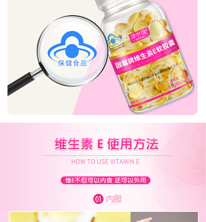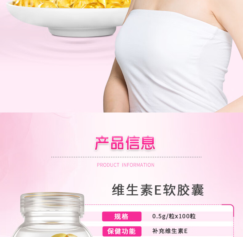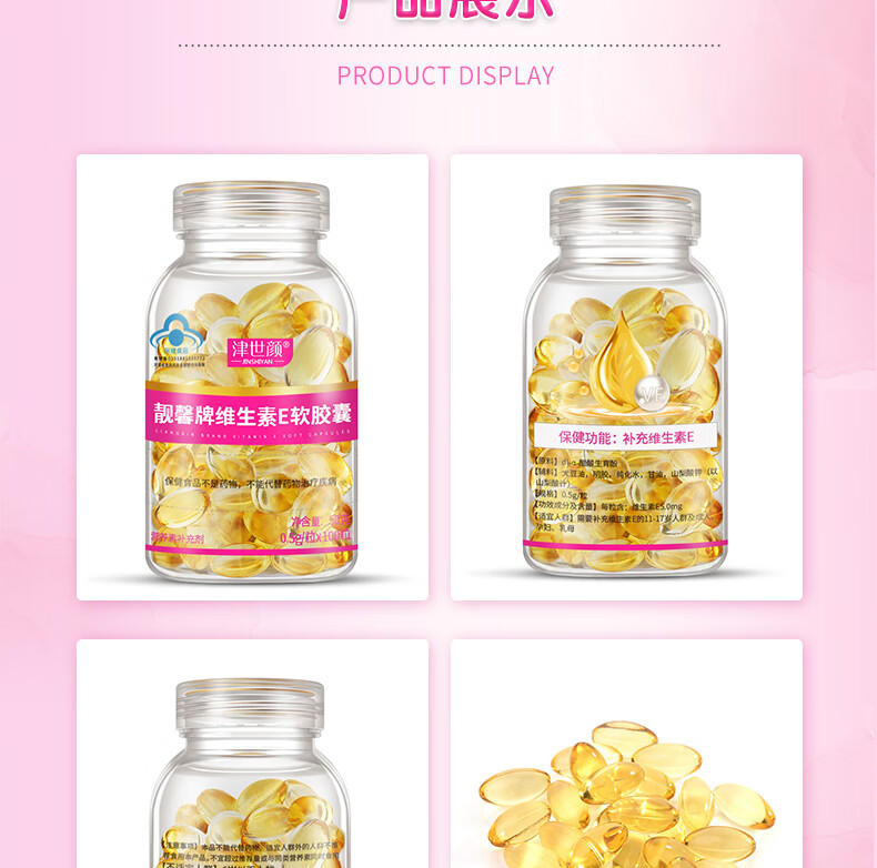 津世颜 维生素E 补充维生素e营养VE软胶囊可搭维生素C片食用 100粒 1瓶