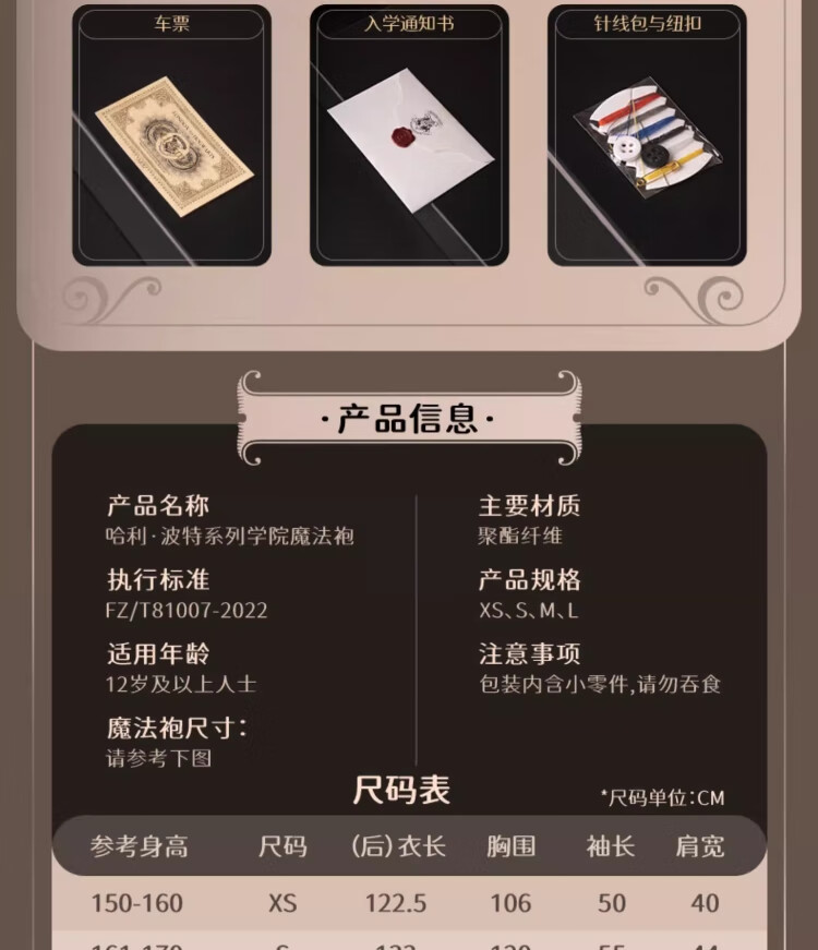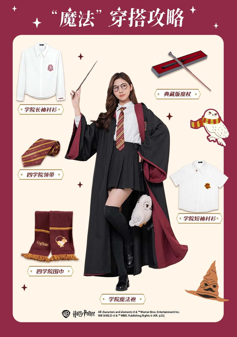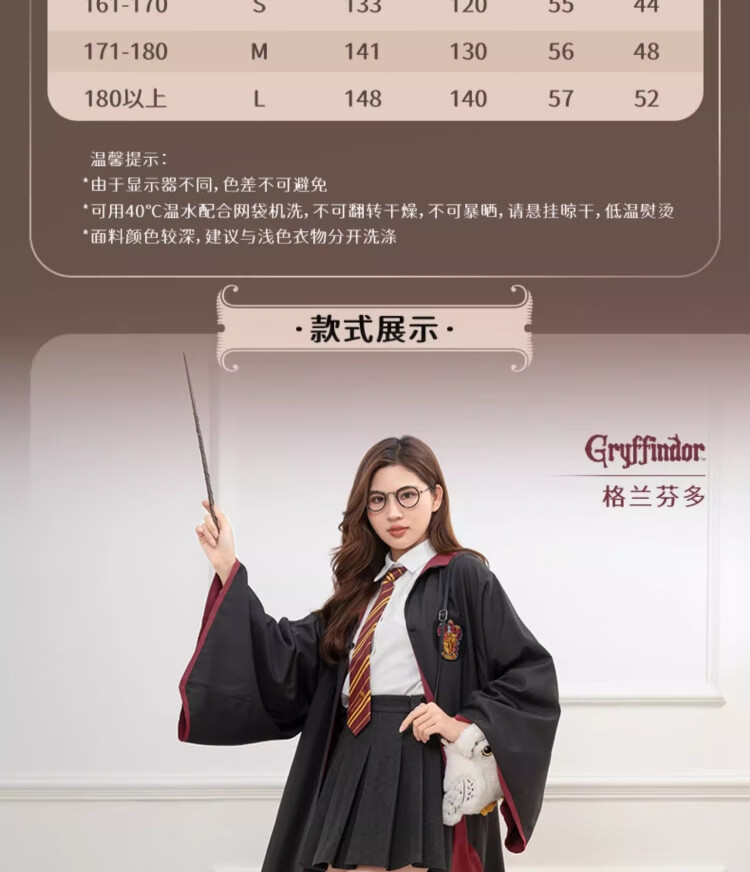 哈利·波特魔法袍霍格沃茨学院魔法袍格兰芬多披风长袍COS衣服生日礼物正版 格兰芬多【赠霍格沃茨礼包】 XS