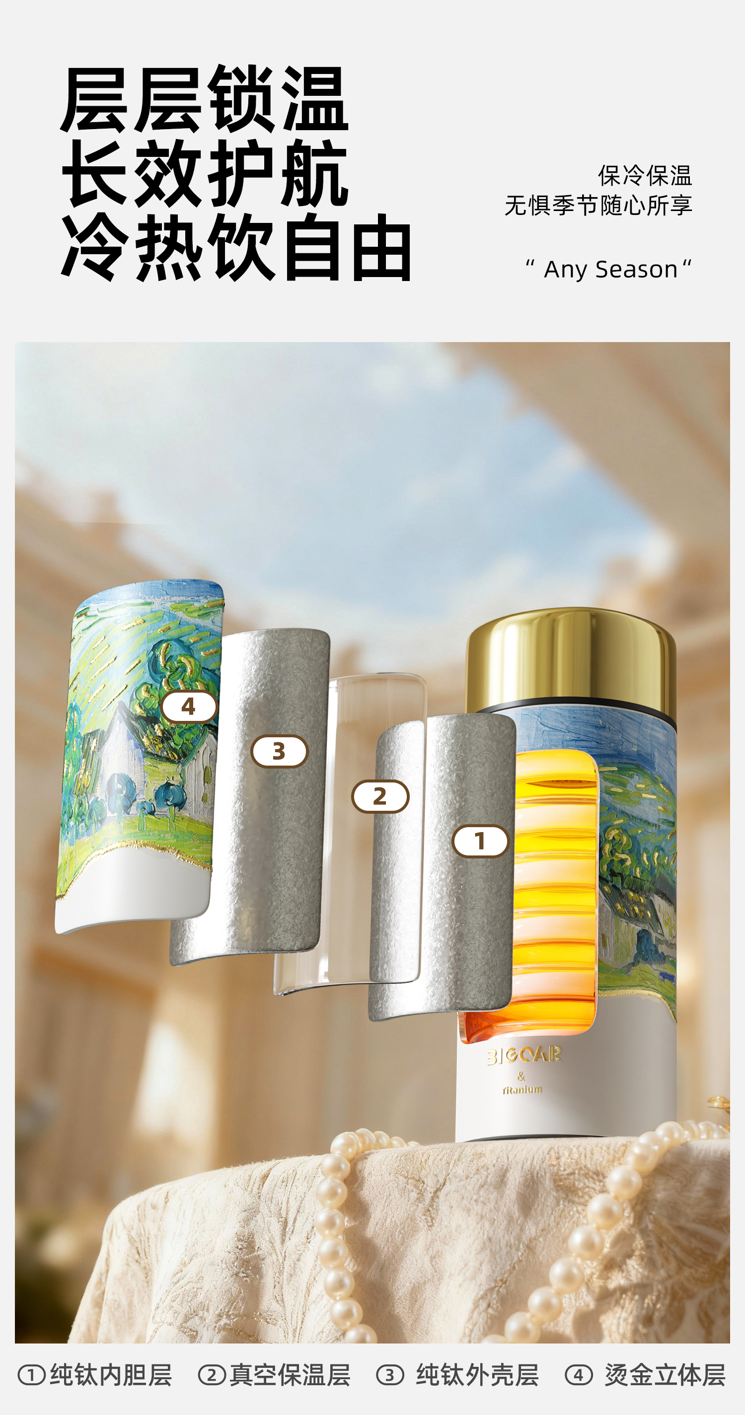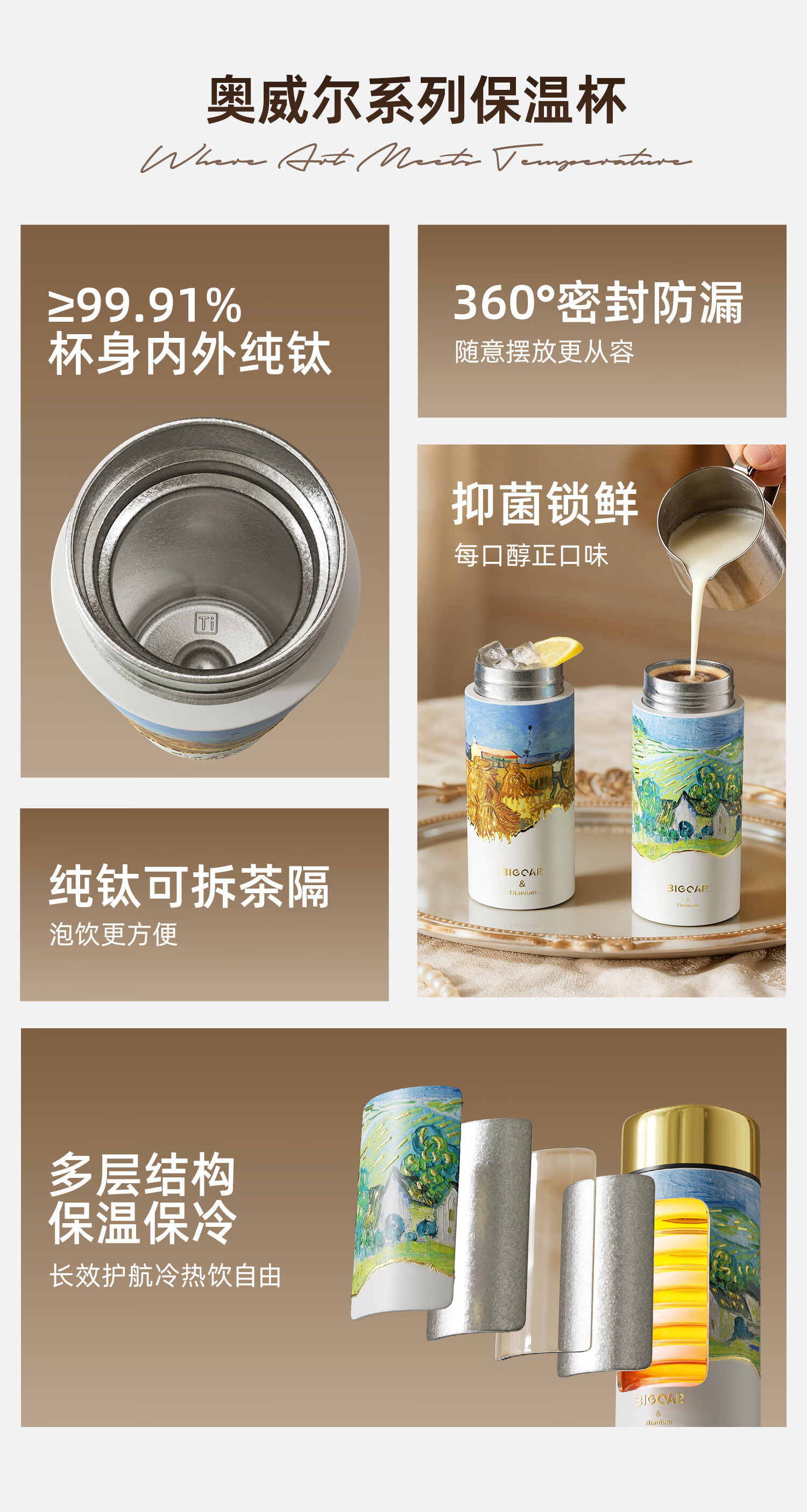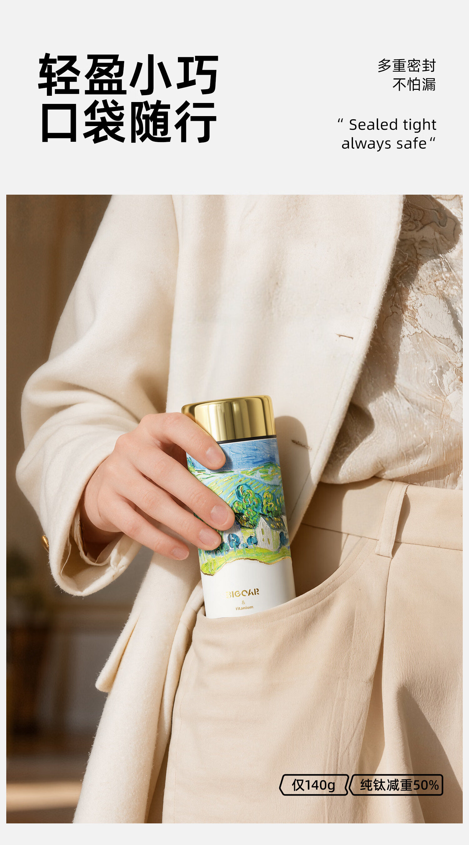 大卡钛杯女士纯钛保温杯迷你泡茶杯子便携随身口袋水杯生日礼物送女友 【内外纯钛】奥维尔-200ml