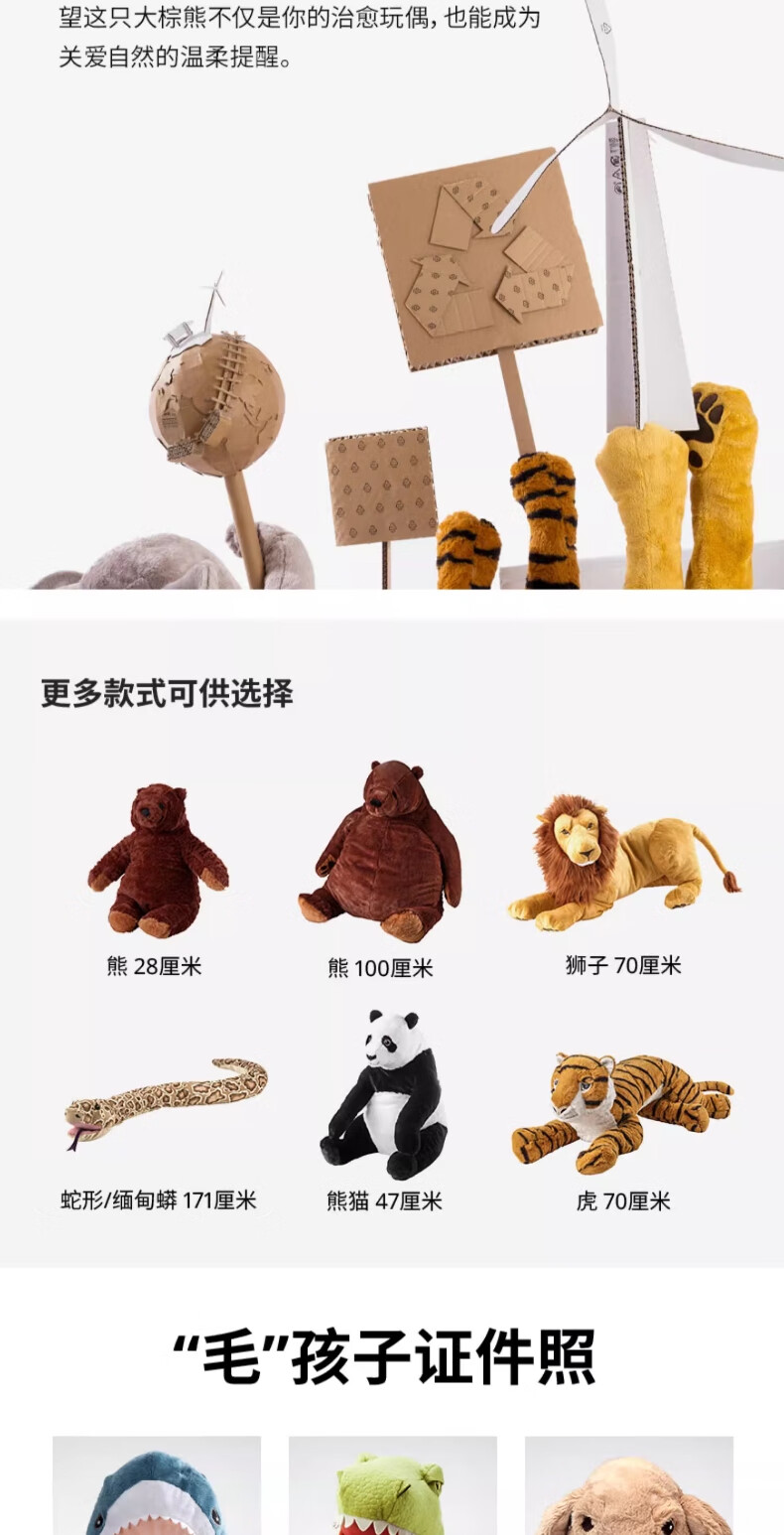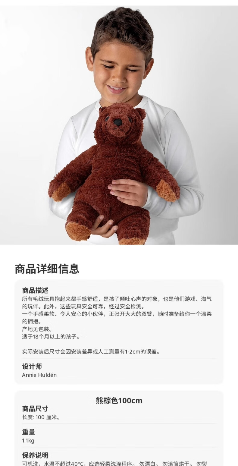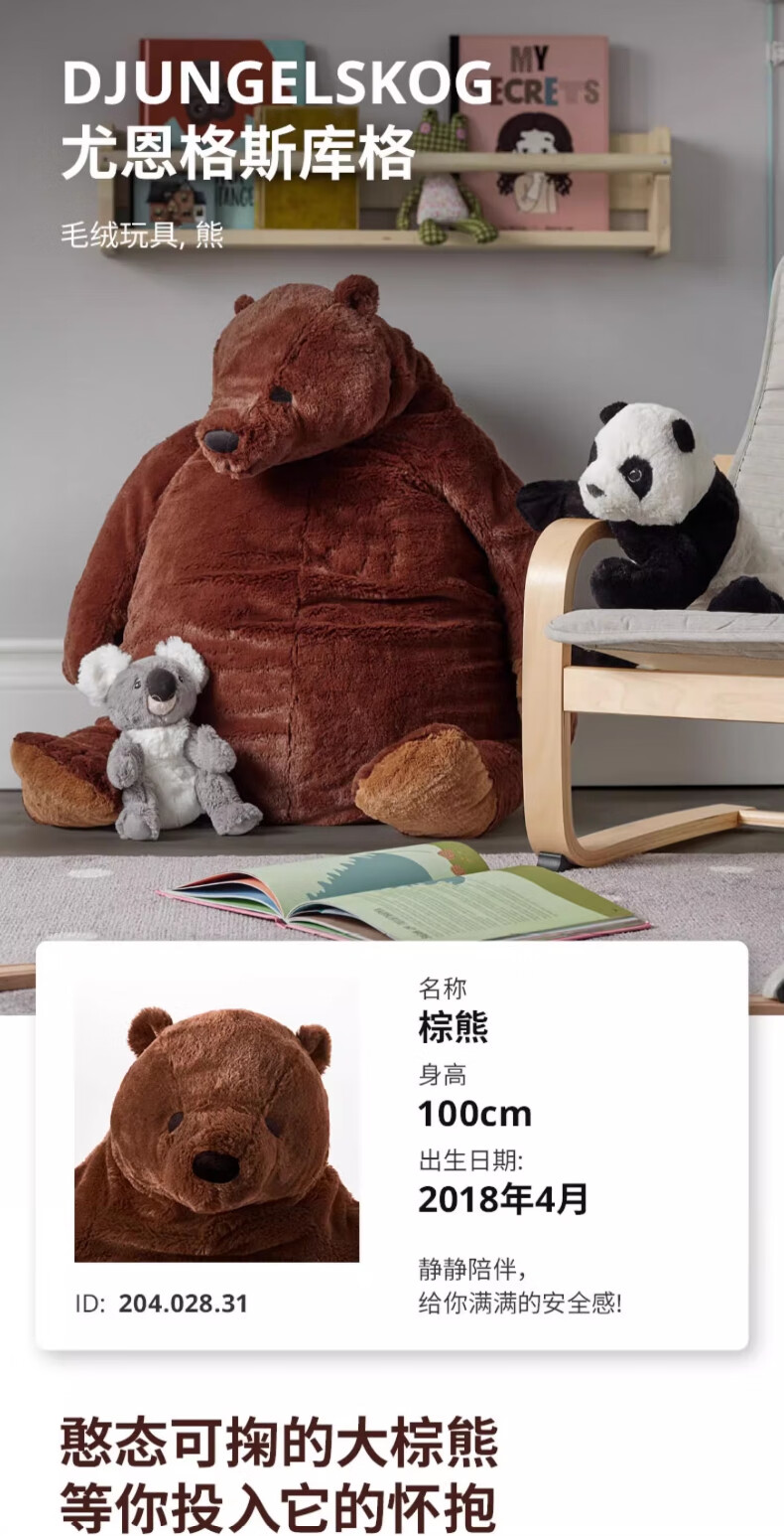 宜家(IKEA)DJUNGELSKOG尤恩格斯库MULNA穆尔纳动物毛绒玩具玩偶 熊100cm