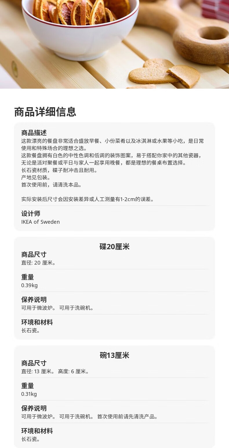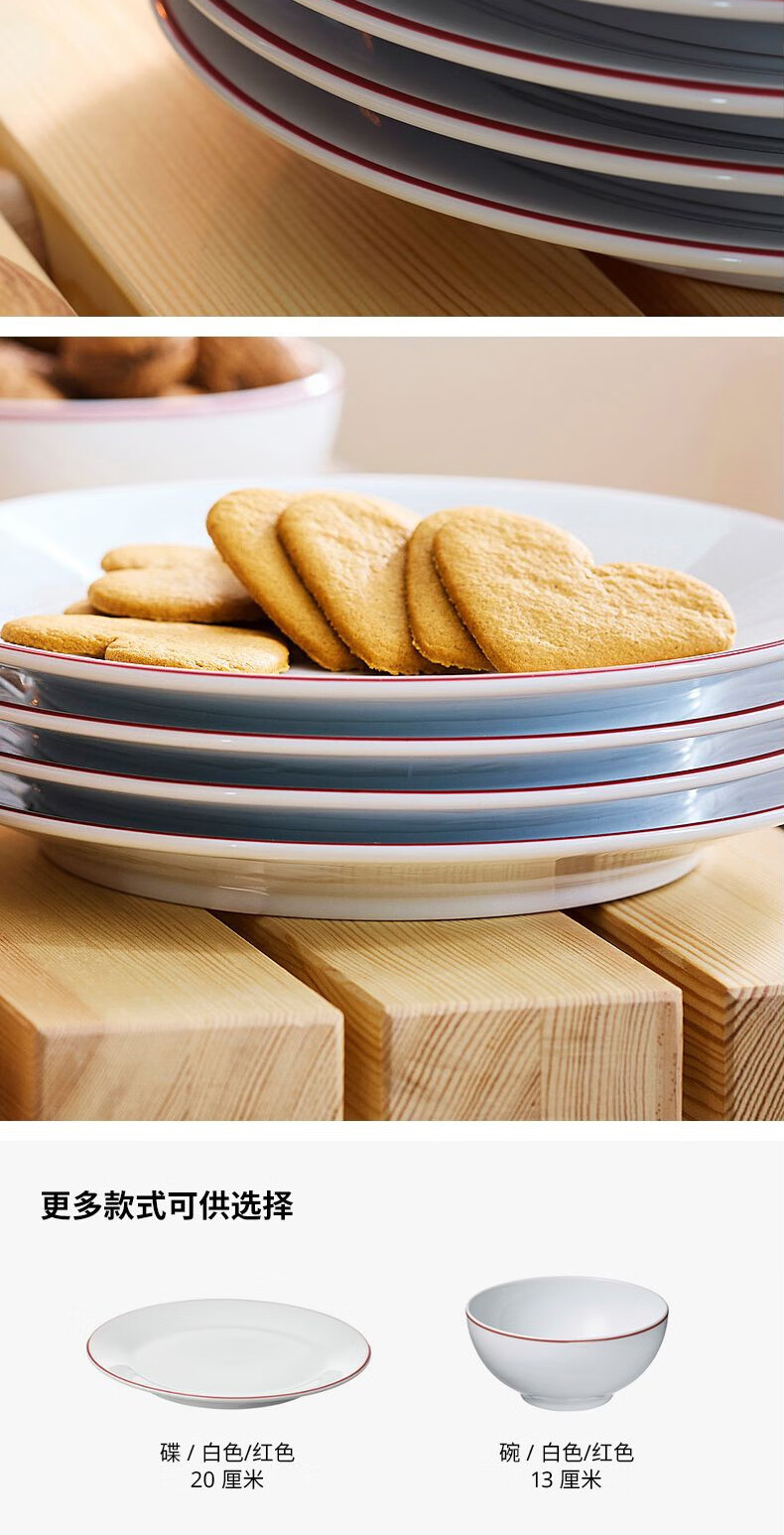 宜家(IKEA)【新品】VINTERFINT云芬特碟平盘摆桌沙拉牛排西餐 白色红色碗13cm