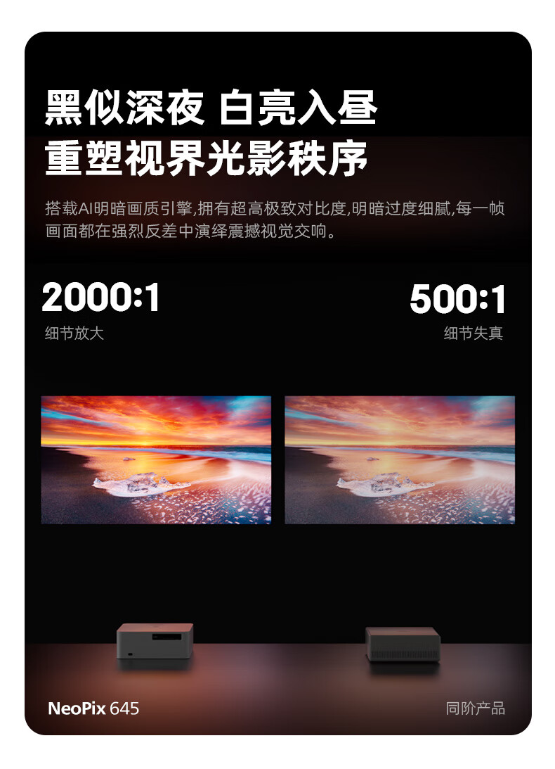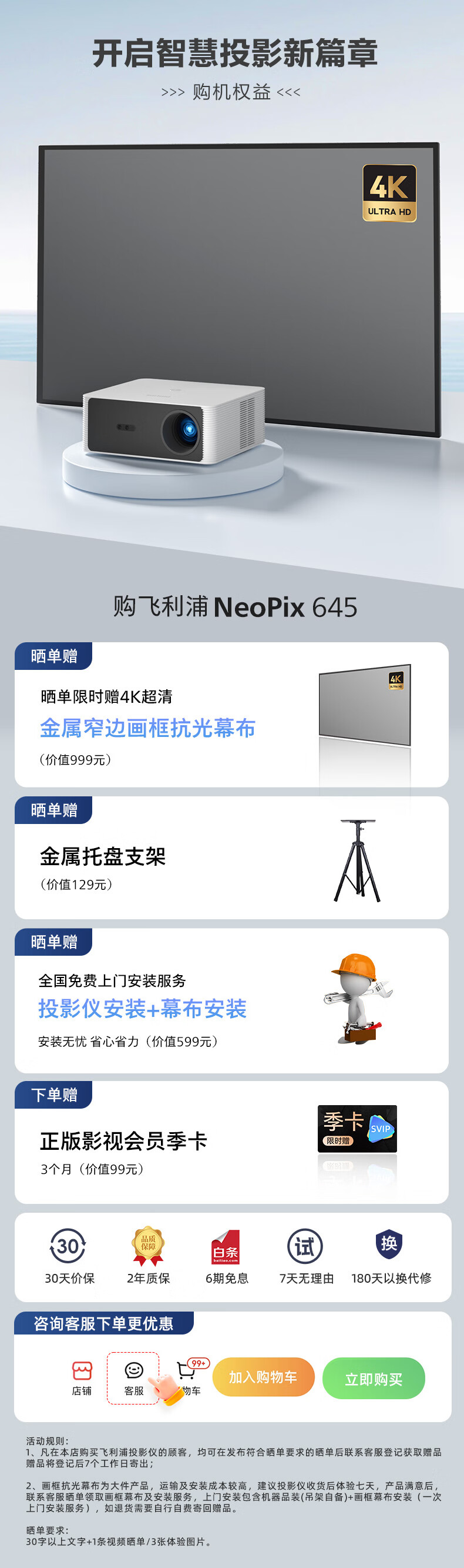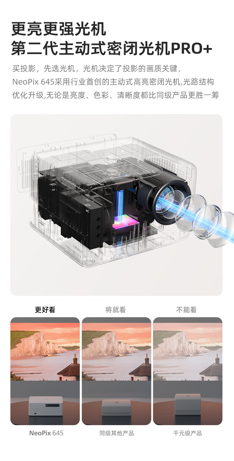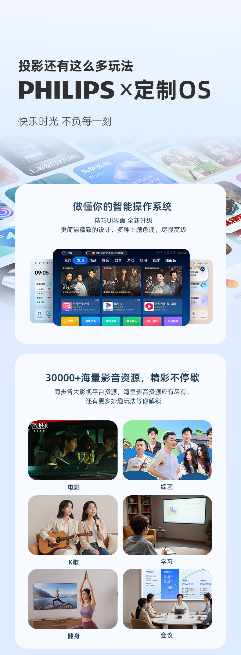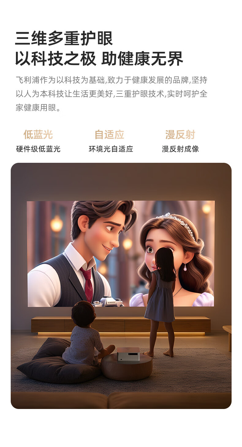 飞利浦(PHILIPS)NeoPix 645投影仪家用 智能家庭影院电视办公培训手机投影机 (TOF无感自动对焦 1080P 超清高亮)