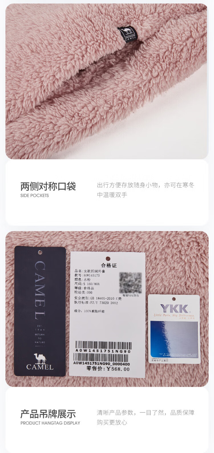 骆驼(CAMEL)户外抓绒衣春秋加厚保暖开衫冲锋衣内胆外套防静电