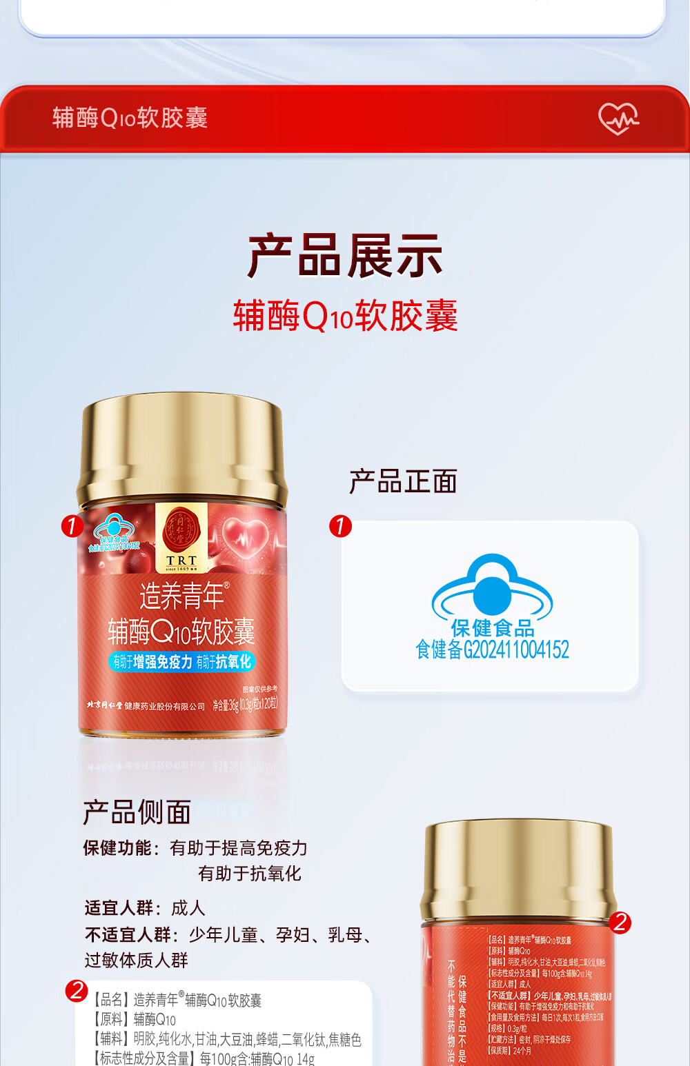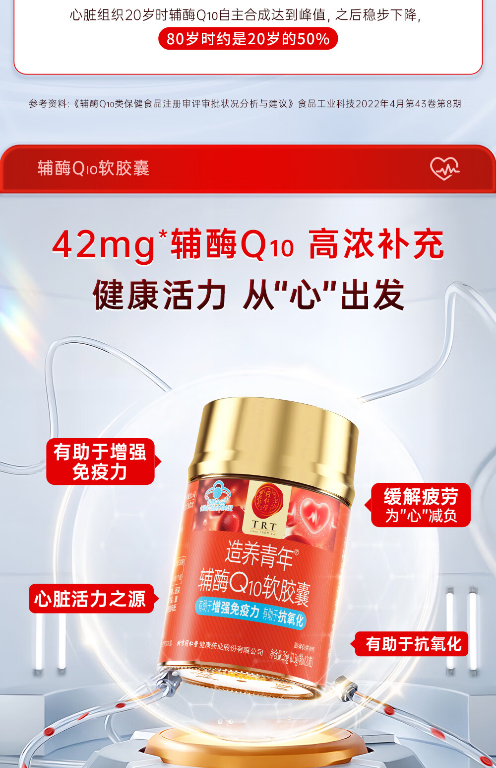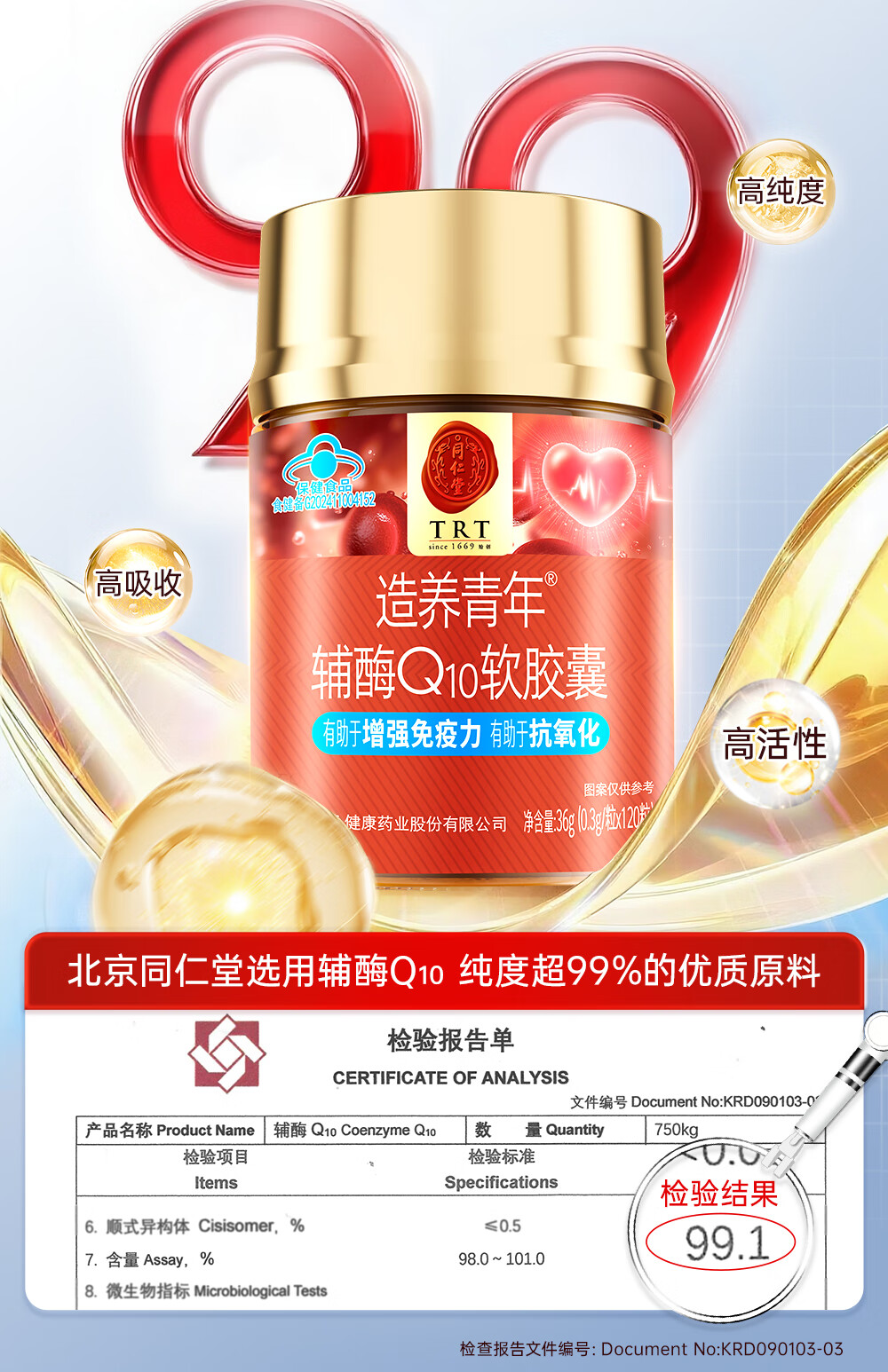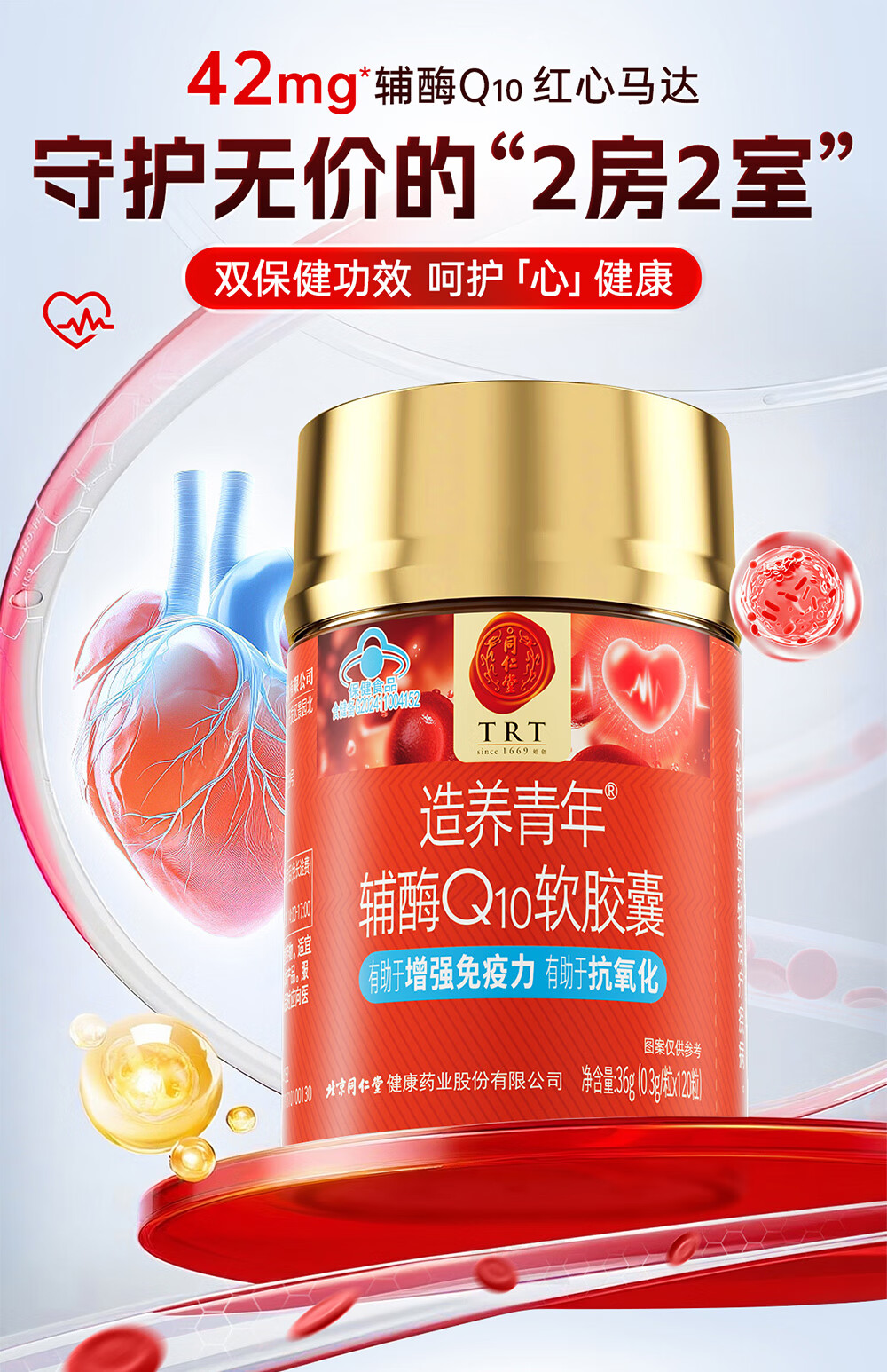 同仁堂辅酶Q10胶囊增强免疫力保护心脏肌动力抗氧化保健品120粒*1瓶