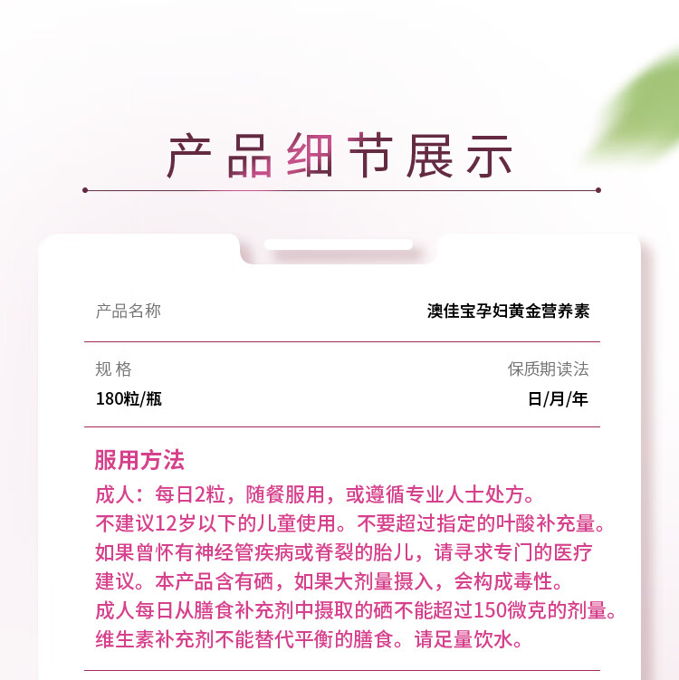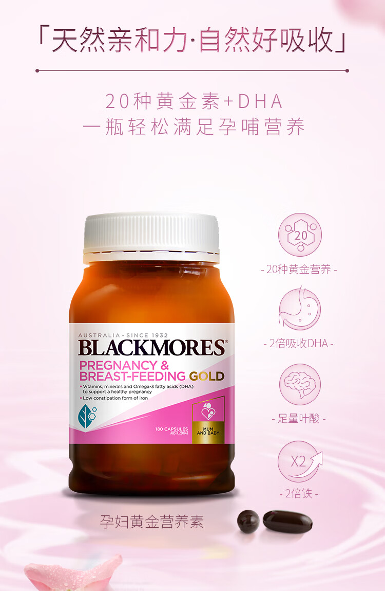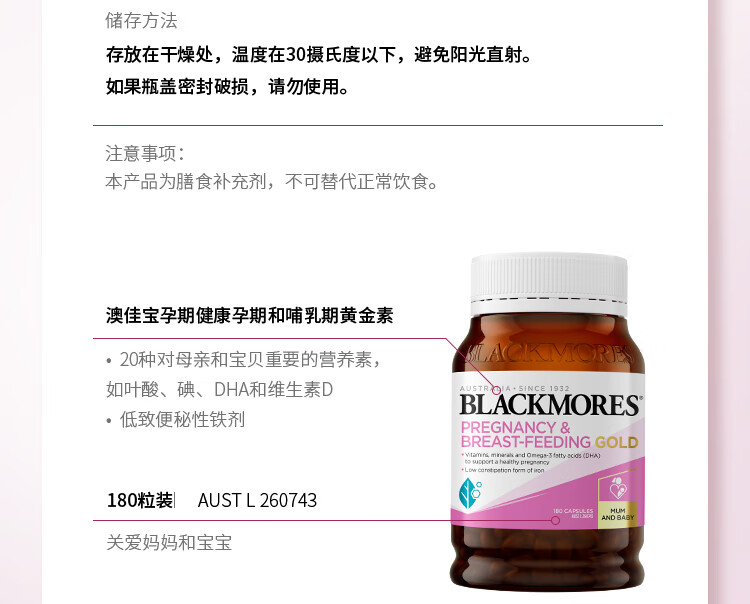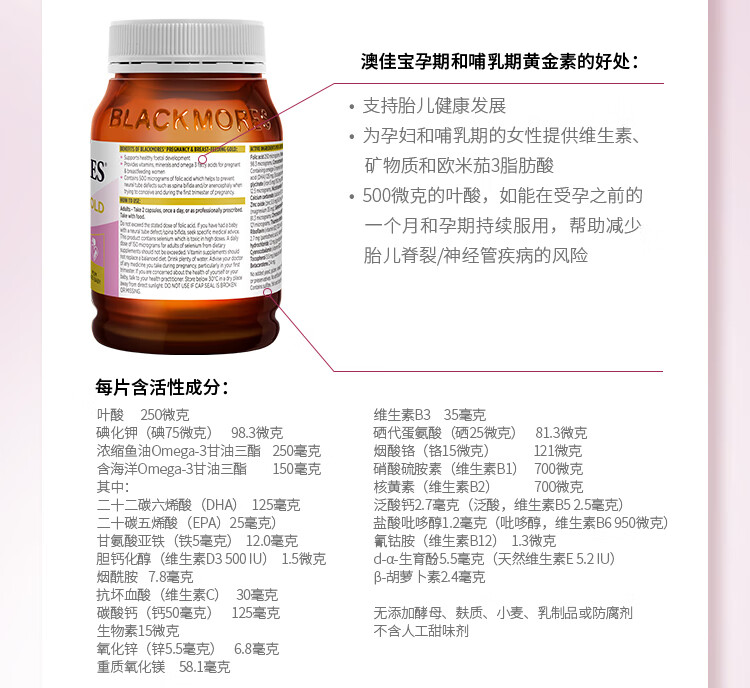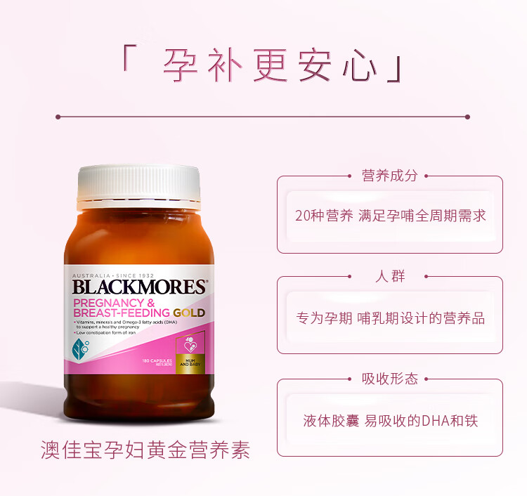 澳佳宝Blackmores孕妇黄金素叶酸DHA备孕维生素180粒全孕期进口
