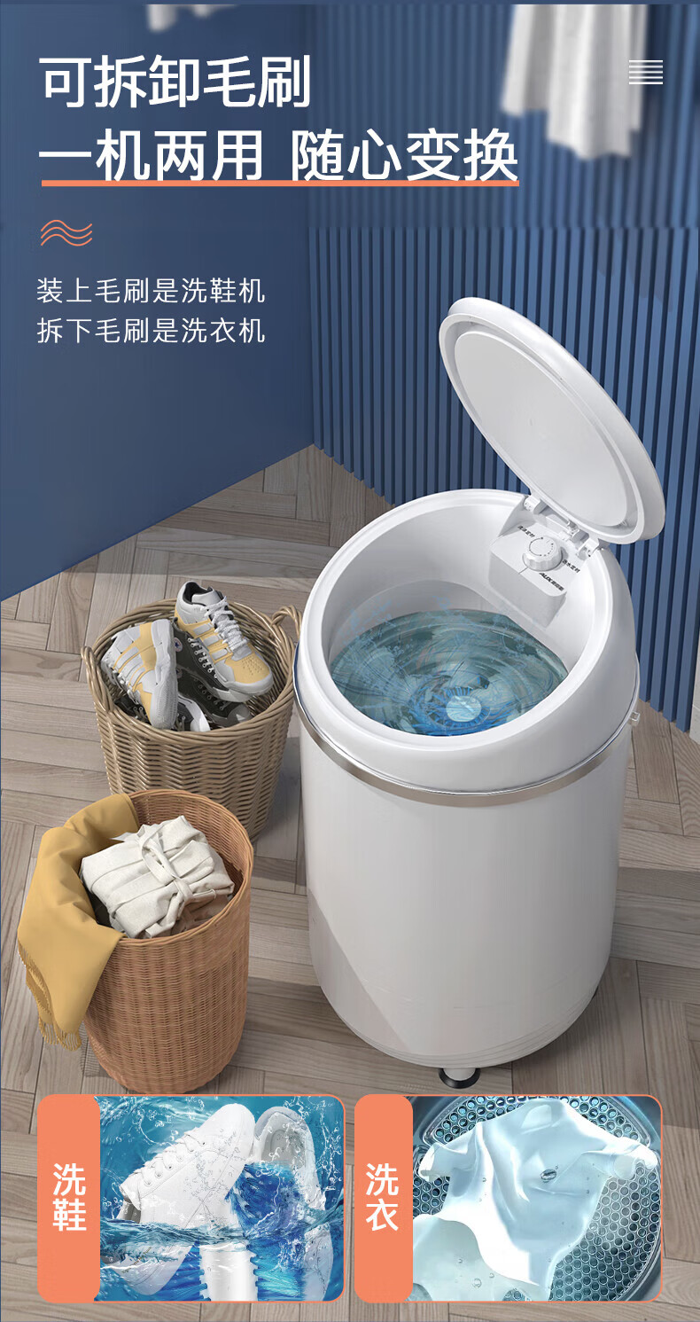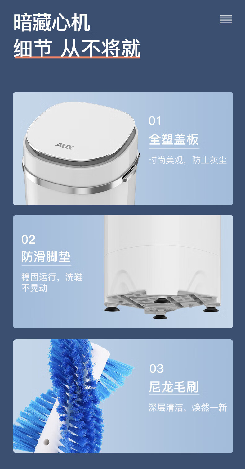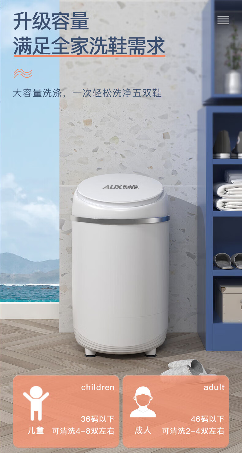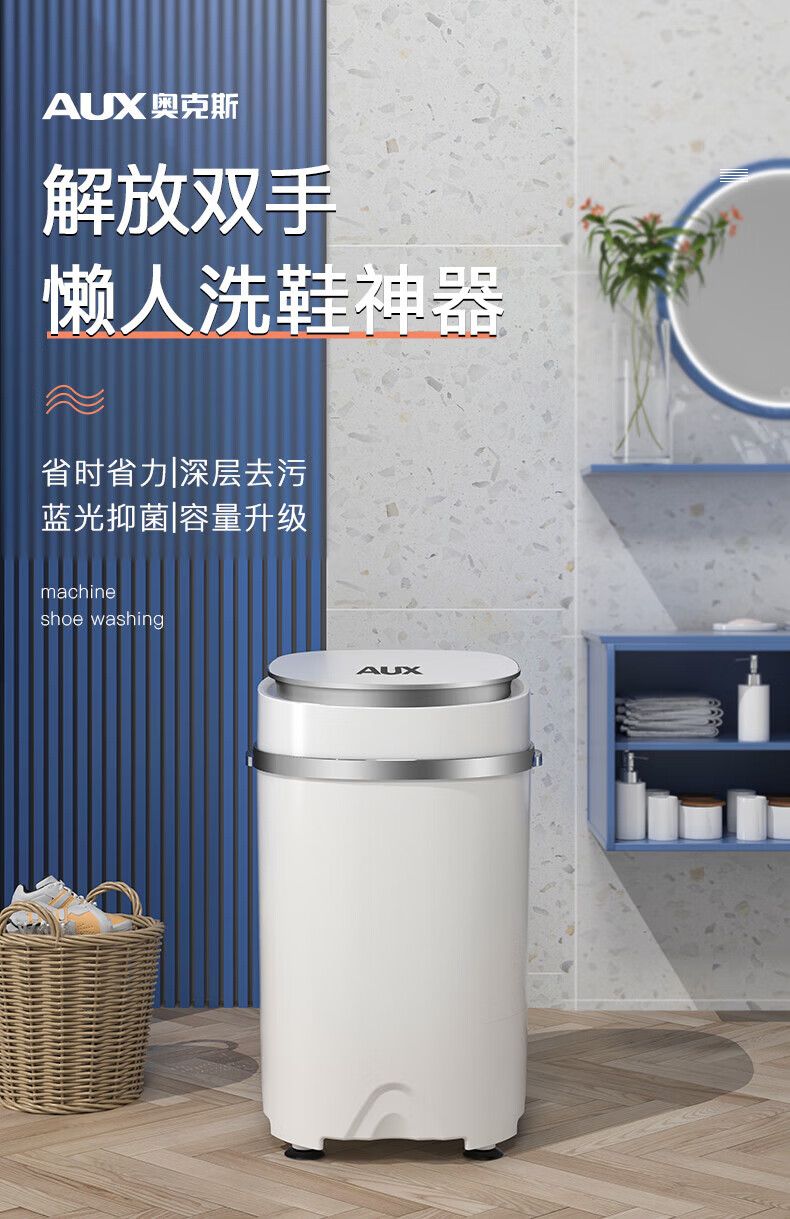 奥克斯洗鞋机全自动洗脱水一体免拆鞋带刷鞋机器脱水烘干一体机专业刷鞋神器家用小型360刷可脱水甩鞋机 全壁刷洗脱旗舰款丨顶刷360清洁丨蓝光杀菌
