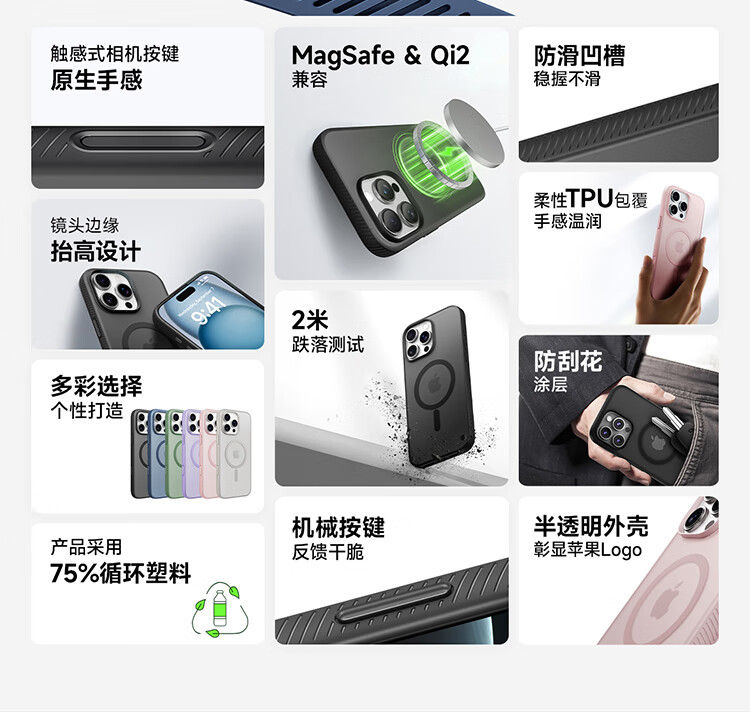 贝尔金(BELKIN)适用苹果17手机壳iPhone17手机壳 半透明保护壳 超薄全包手机保护套 绿色 iPhone17