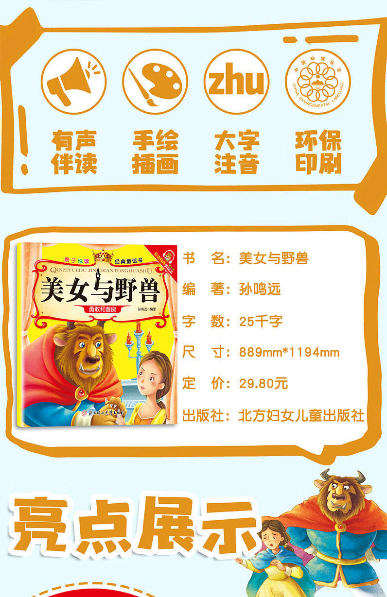 美女与野兽亲子悦读经典童话书启蒙早教益智读物幼儿童经典绘本儿童睡前故事