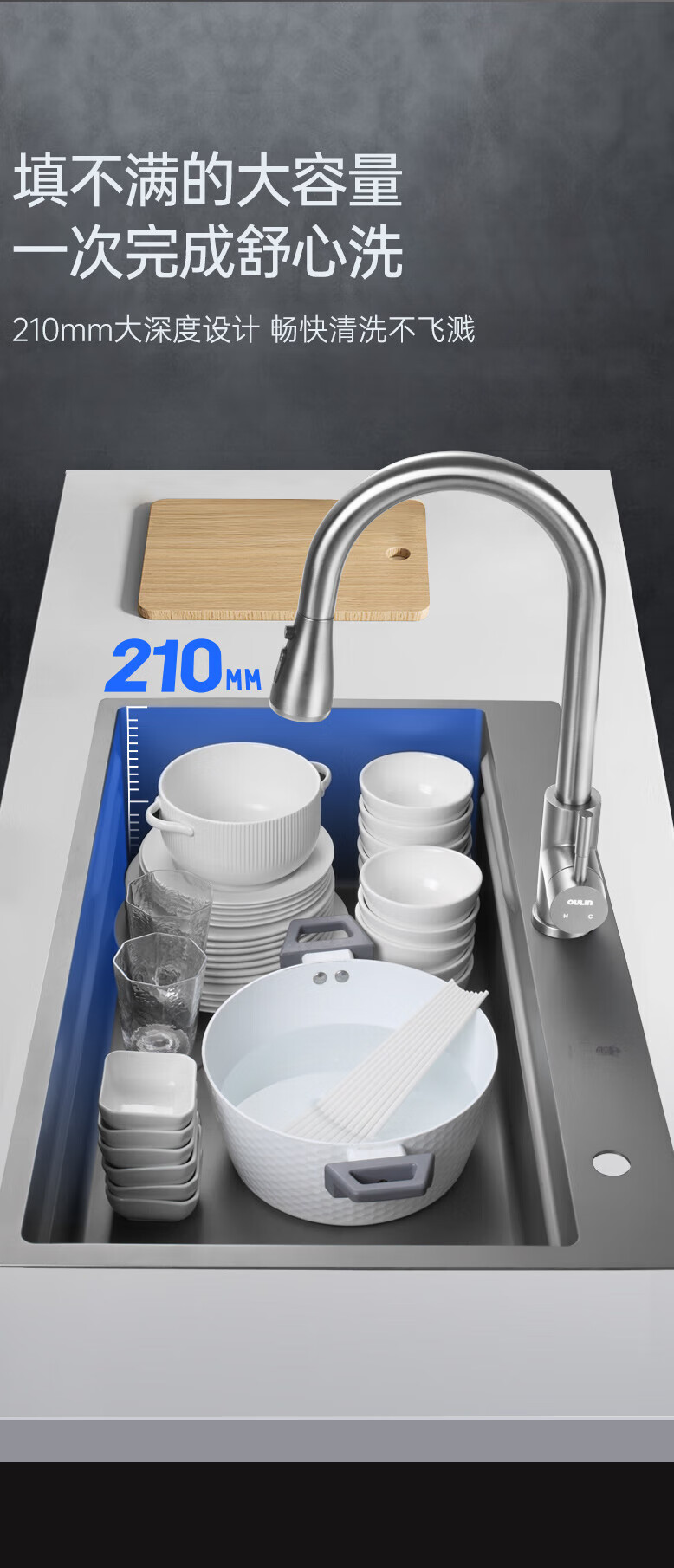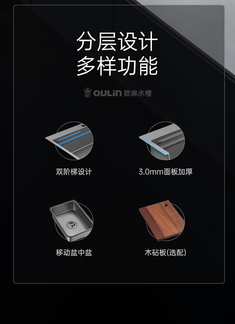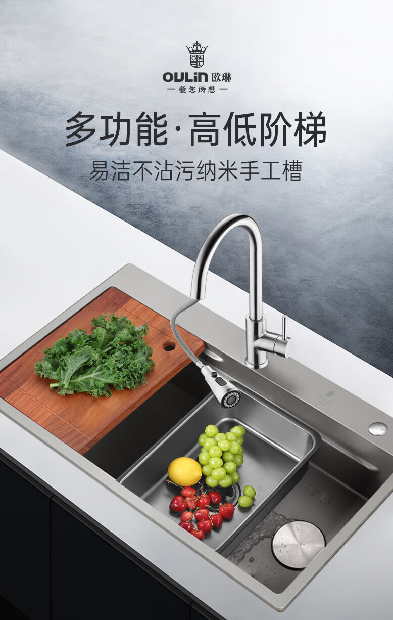 欧琳(OULIN)【立减15%】水槽大单槽洗菜盆厨房304不锈钢纳米手工洗碗槽