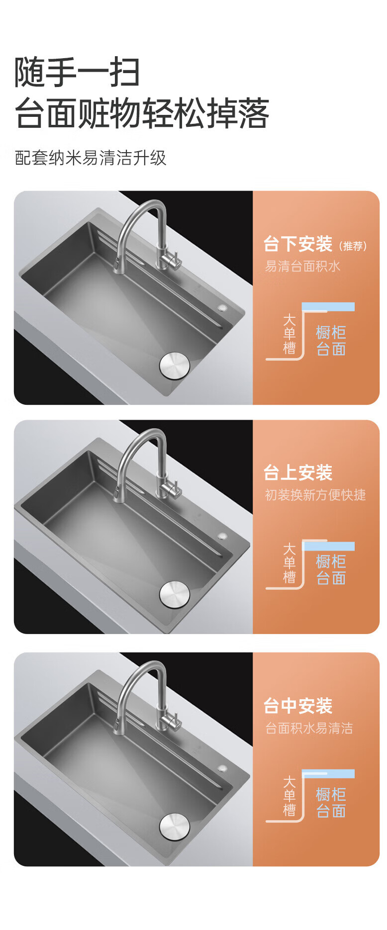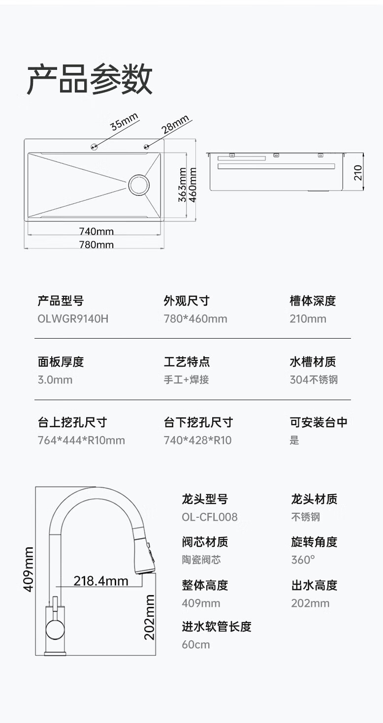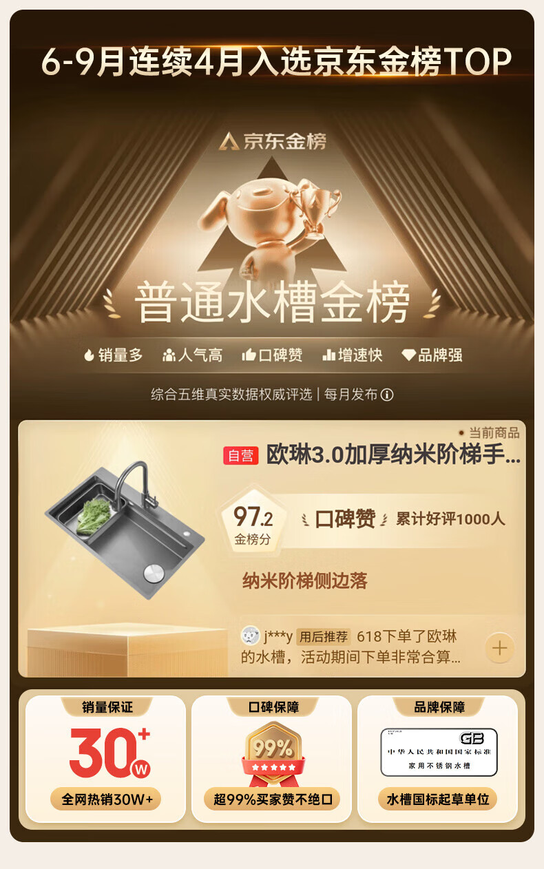 欧琳(OULIN)【立减15%】水槽大单槽洗菜盆厨房304不锈钢纳米手工洗碗槽
