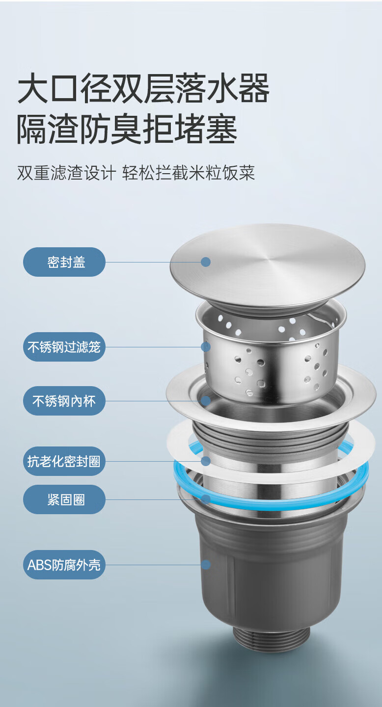 OPLSED【德国】厨房洗菜盆下水管配件洗碗池水槽排水管不锈钢 OP-PSG002
