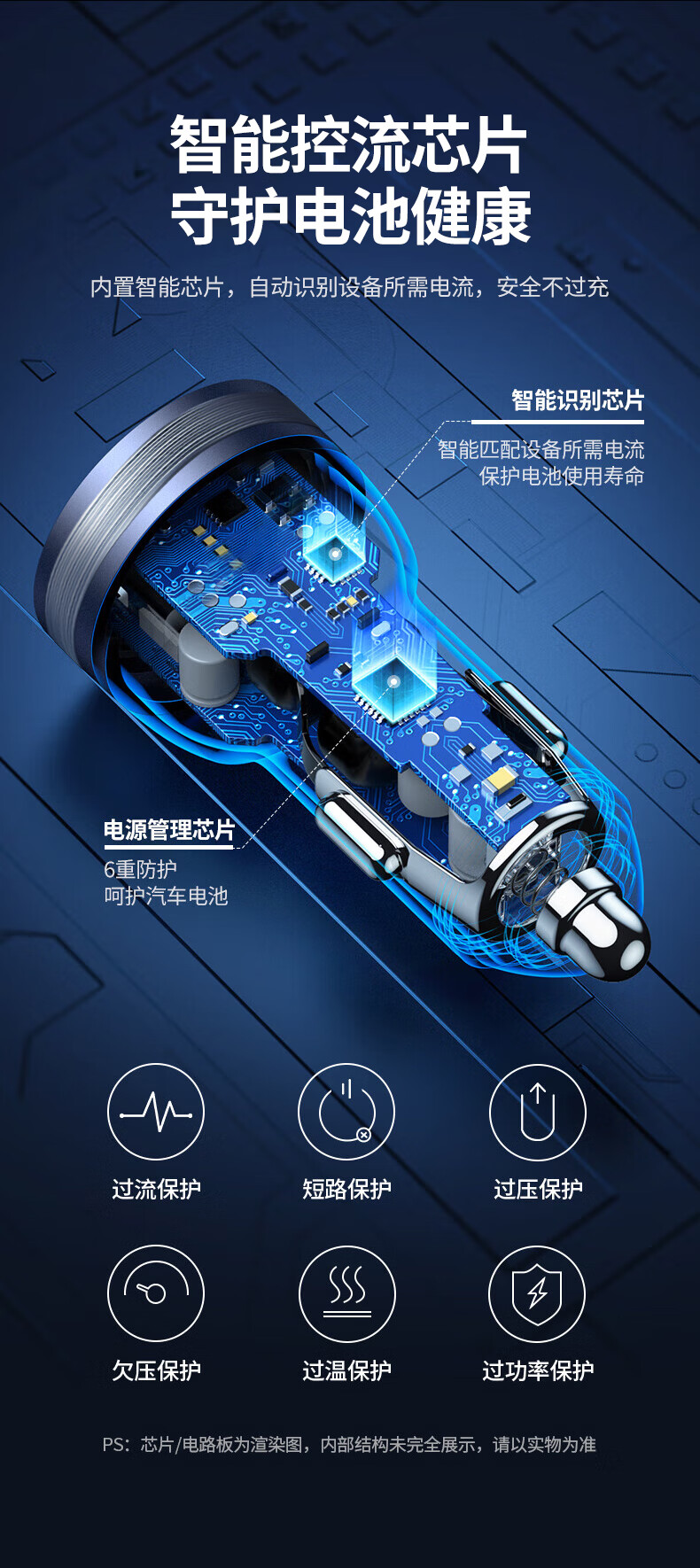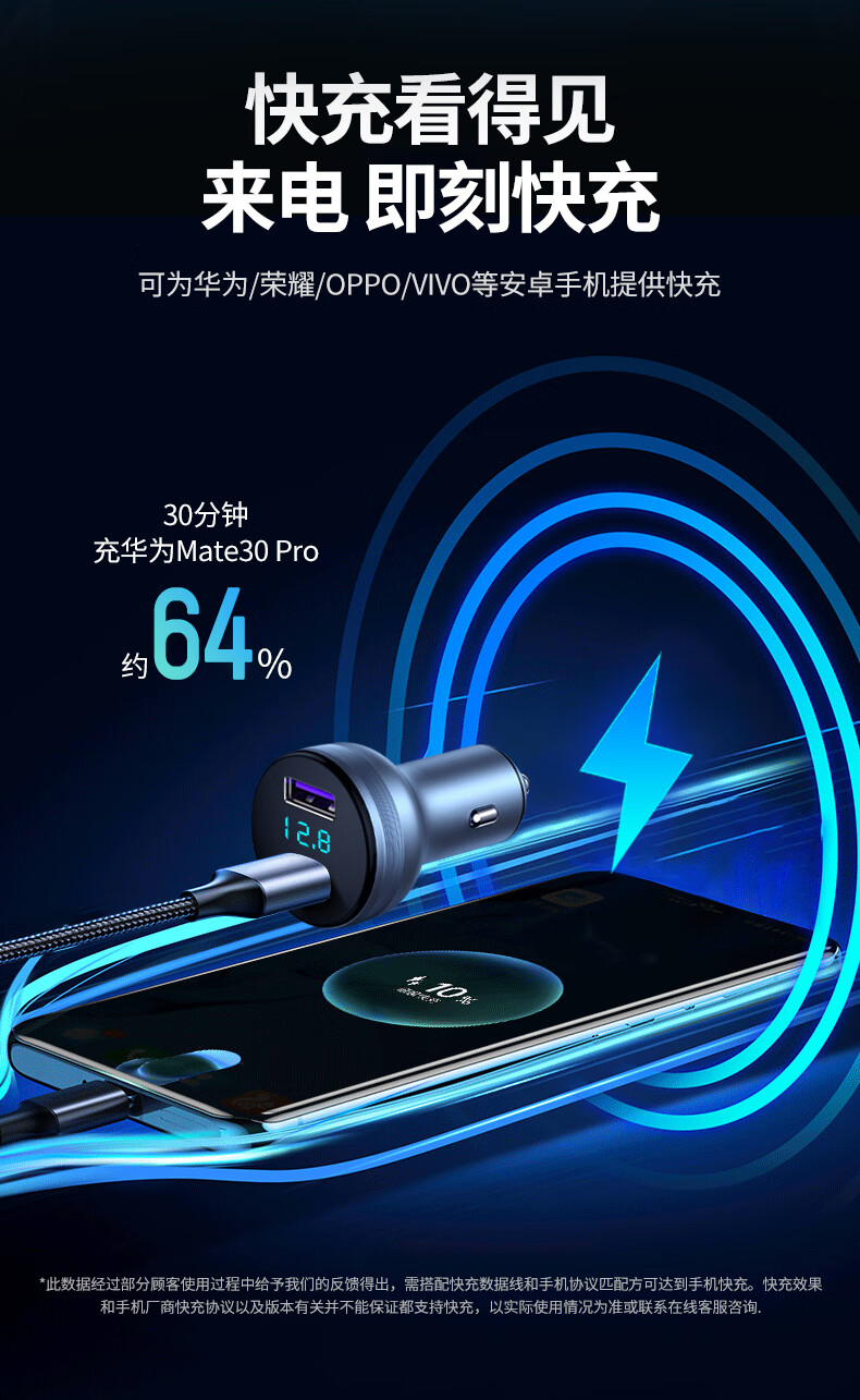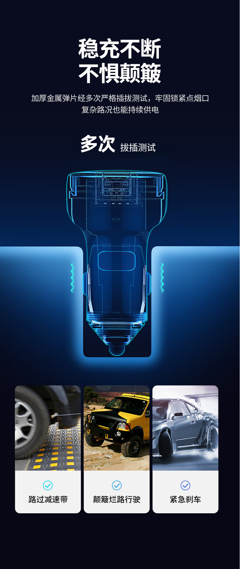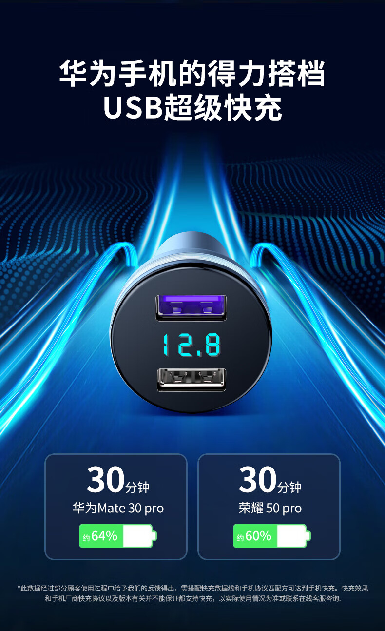 纽曼(Newmine)车载充电器点烟器一拖二双USB金属车充电压显示检测快充SX001-008