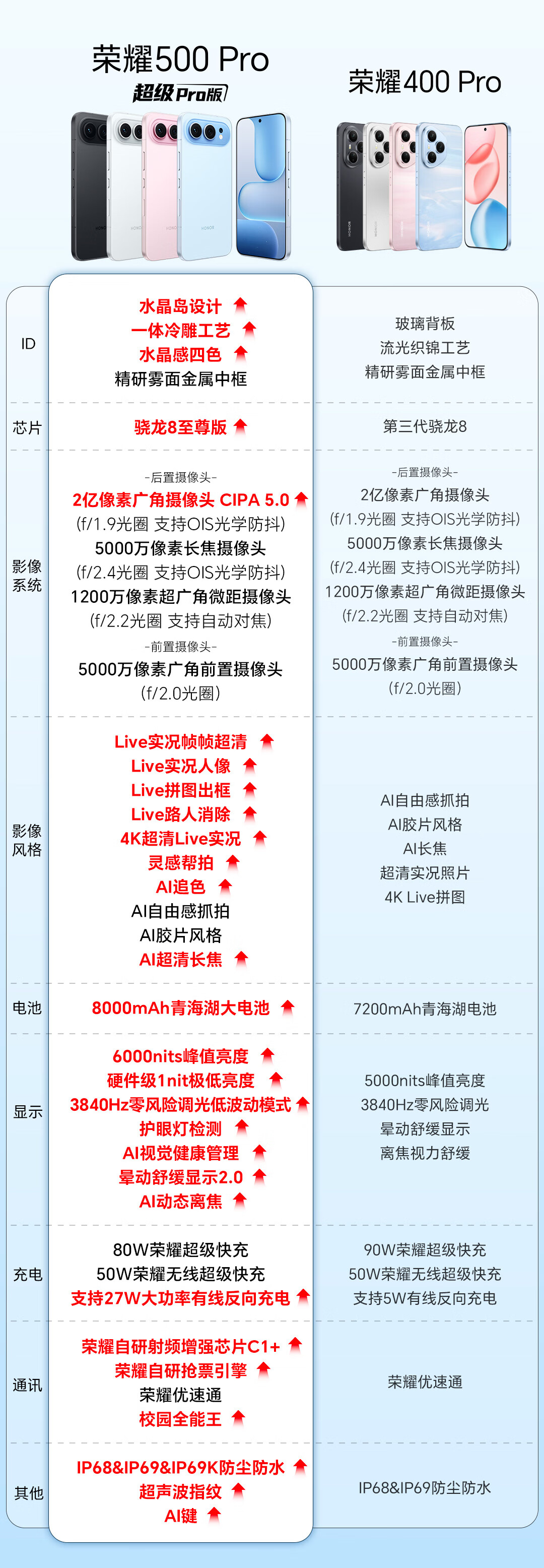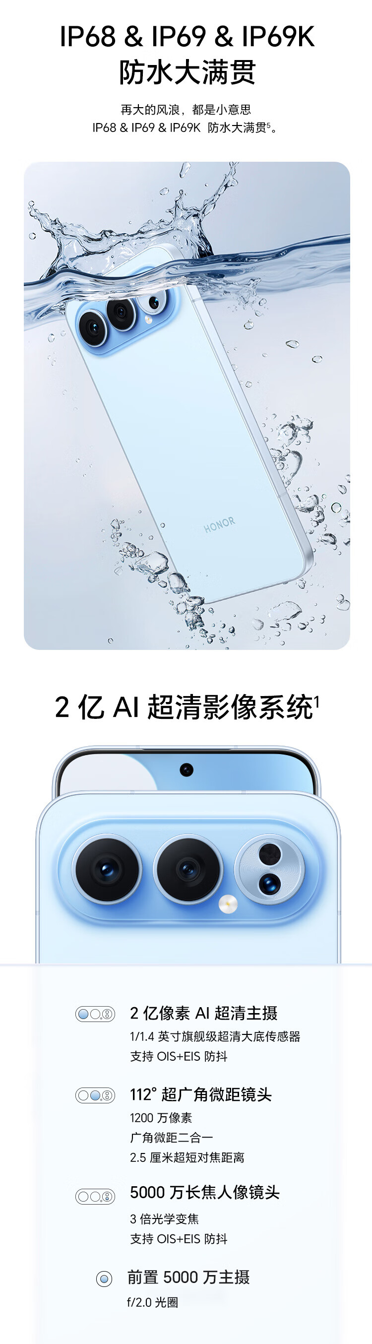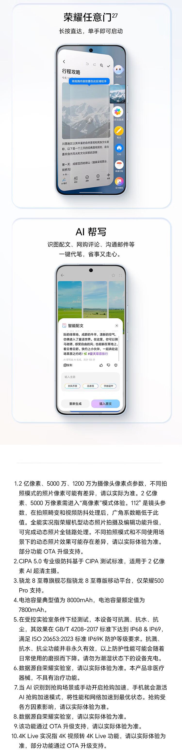 荣耀500 Pro 16+1T海蓝宝超级Pro版 肖战同款 骁龙8至尊旗舰芯 【自营秒送】 新款拍照手机