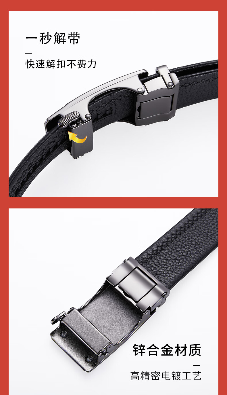 古士旗(GUSKI)皮带男真皮自动扣品牌男士腰带头层牛皮高档礼盒生日礼物送男友 专柜礼盒/百搭枪色/680018A 120cm 190斤内/可剪/超出备注身高体重