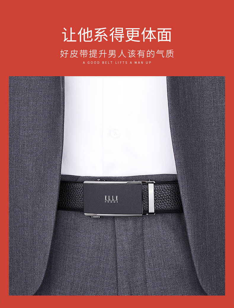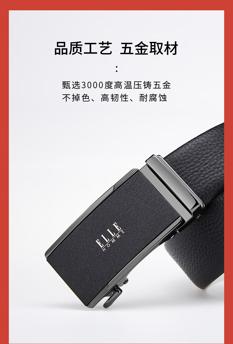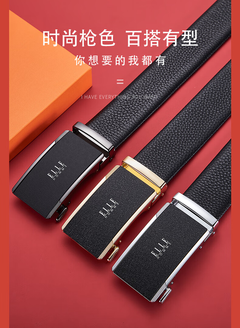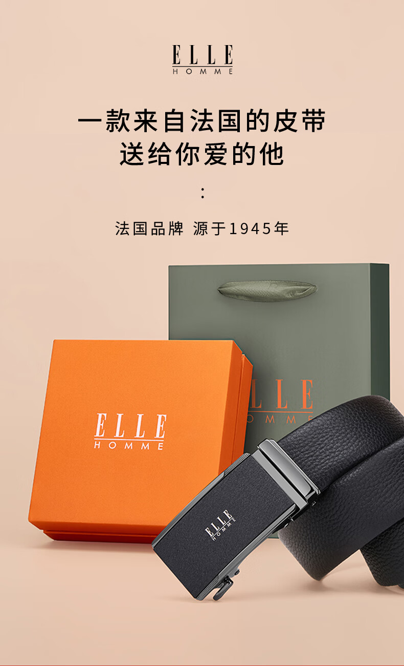 ELLE HOMME法国品牌男士皮带男腰带真皮自动扣圣诞礼物送男友老公 【专柜礼盒】902082金色磨砂 110cm -130默认随机(可修剪)