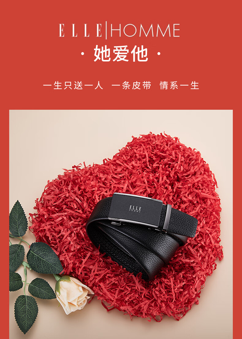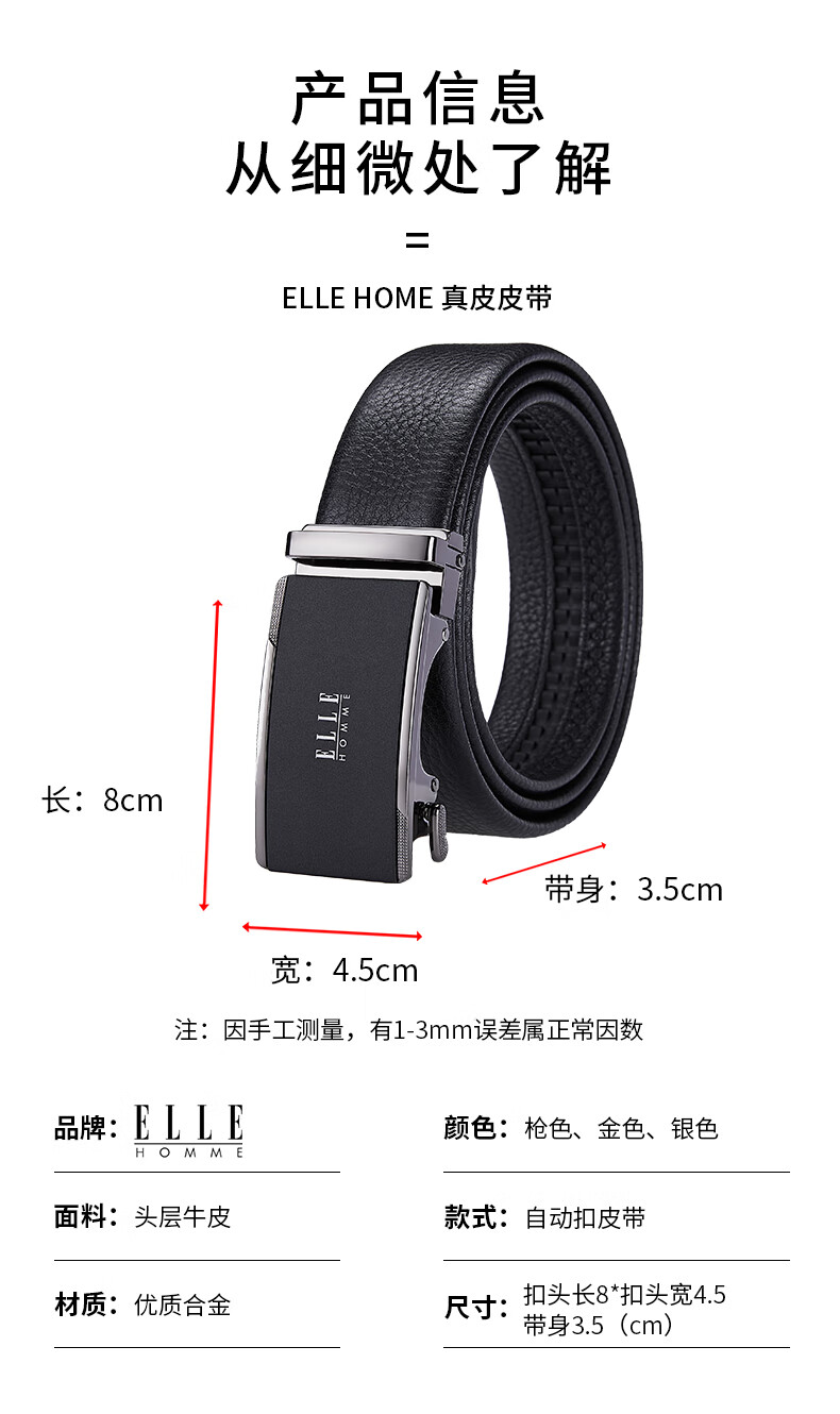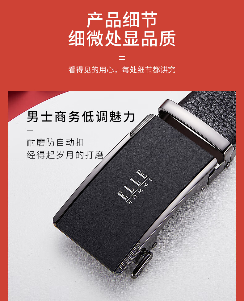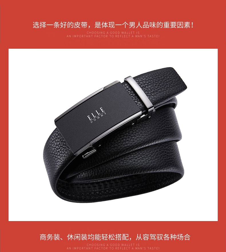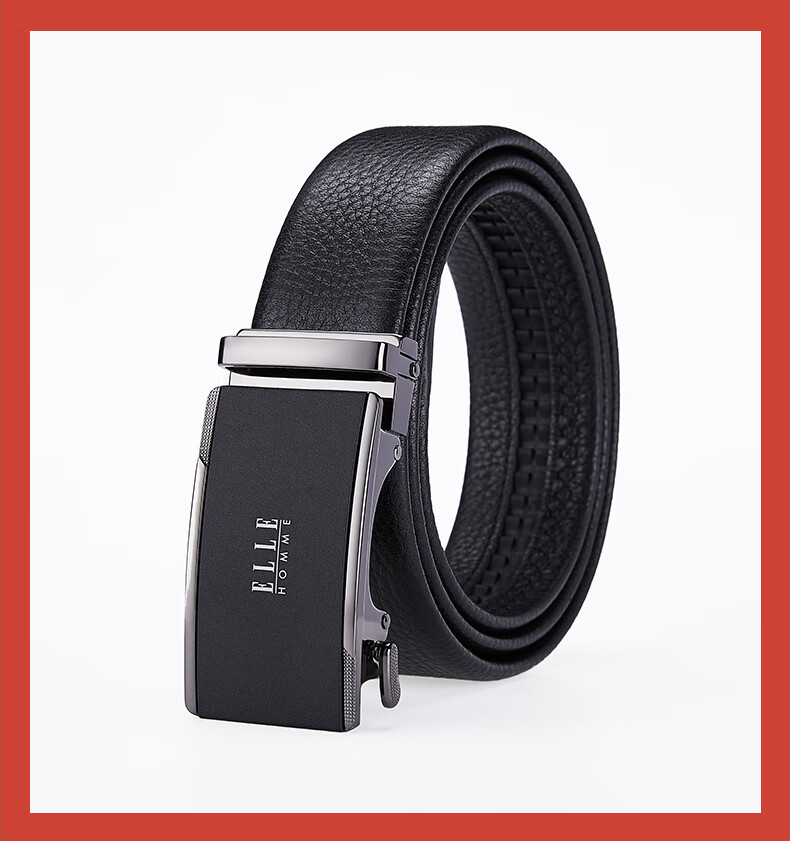 ELLE HOMME法国品牌男士皮带男腰带真皮自动扣圣诞礼物送男友老公 【专柜礼盒】902082金色磨砂 110cm -130默认随机(可修剪)