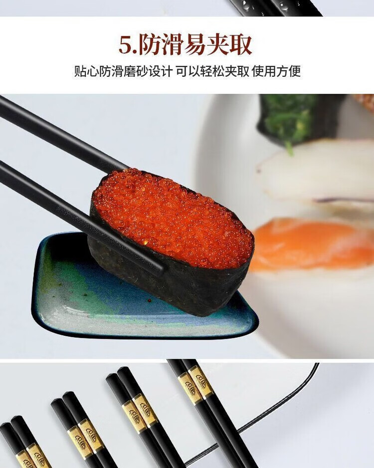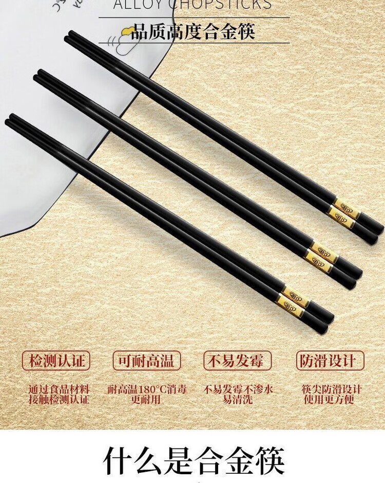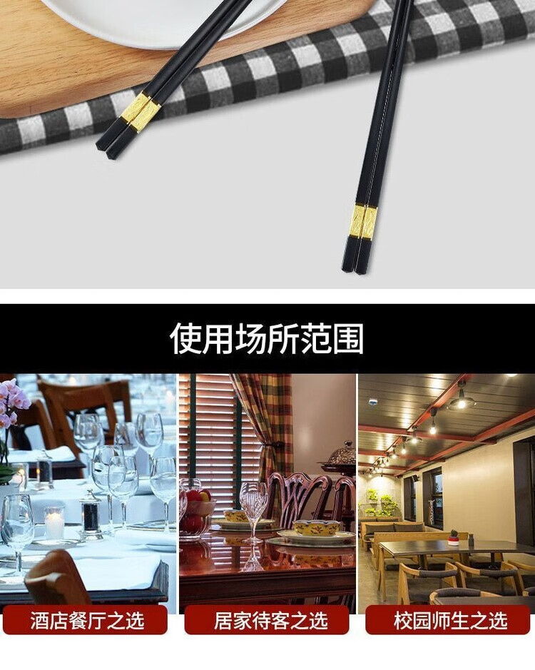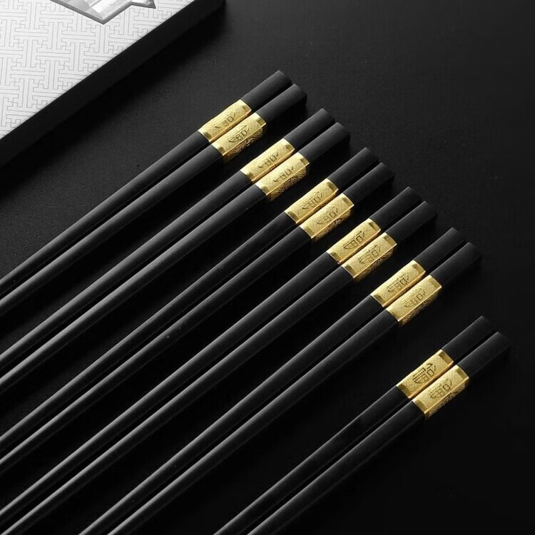 DEATKN耐高温酒店发霉抗菌合金筷子家用高档防霉变形家庭防滑无漆餐厅 家用抗菌金福24CM(光泽好经久耐用耐高温) (家用装)10双