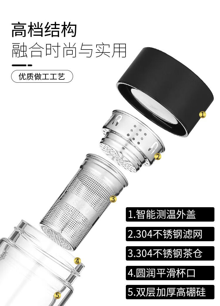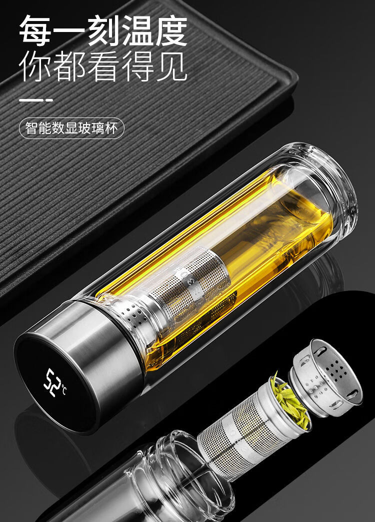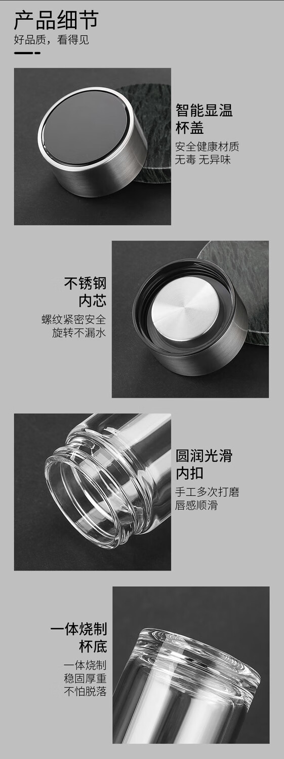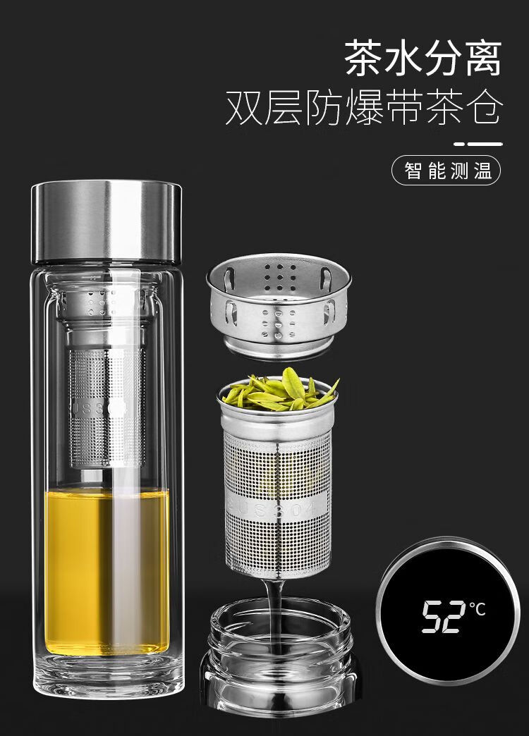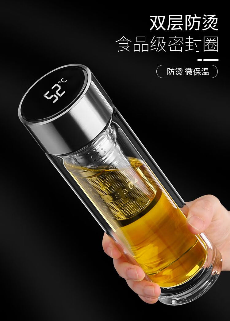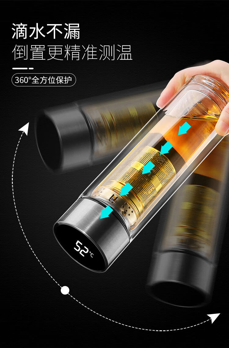 DEATKN双层玻璃杯带盖高档测温专用便携杯特厚全自动家用大容量水杯男 杯子 1ml 450ML钢测温