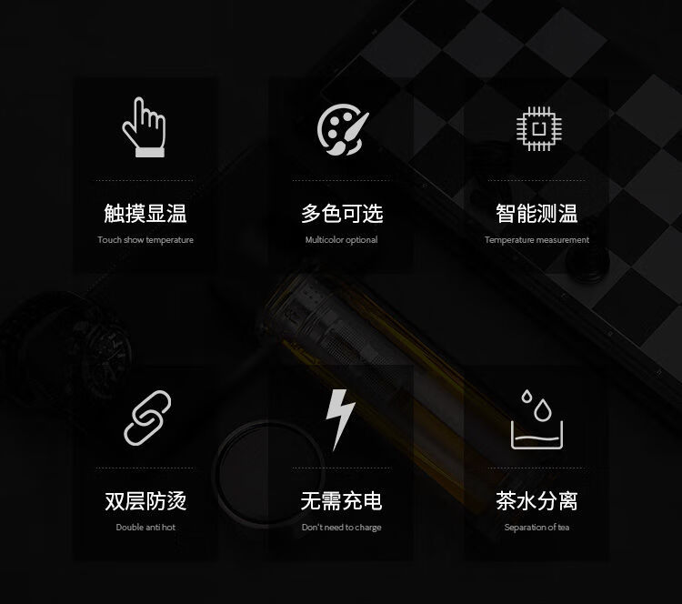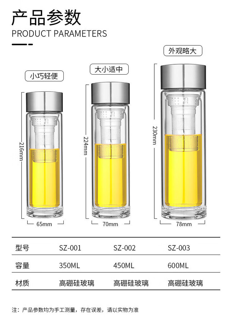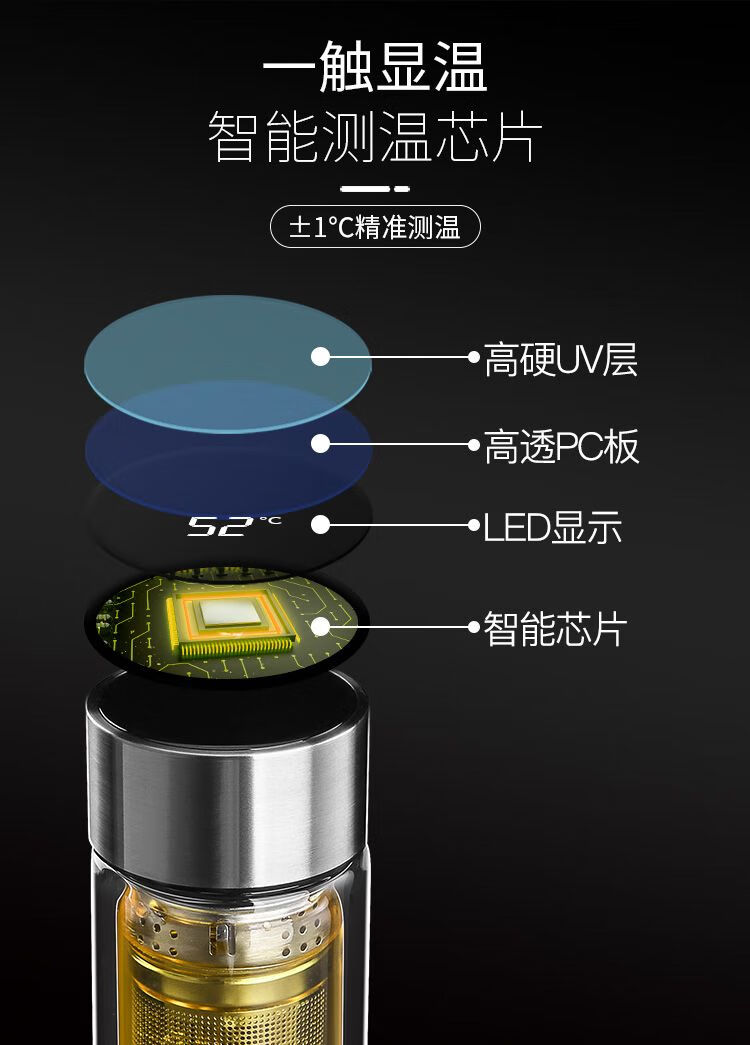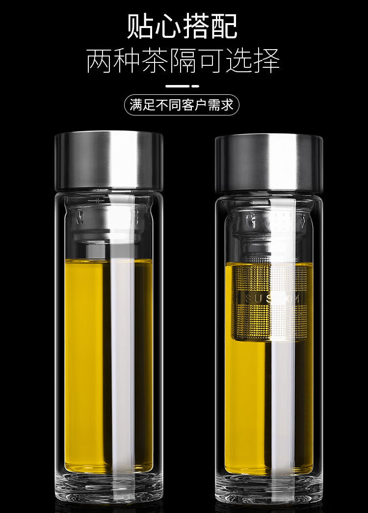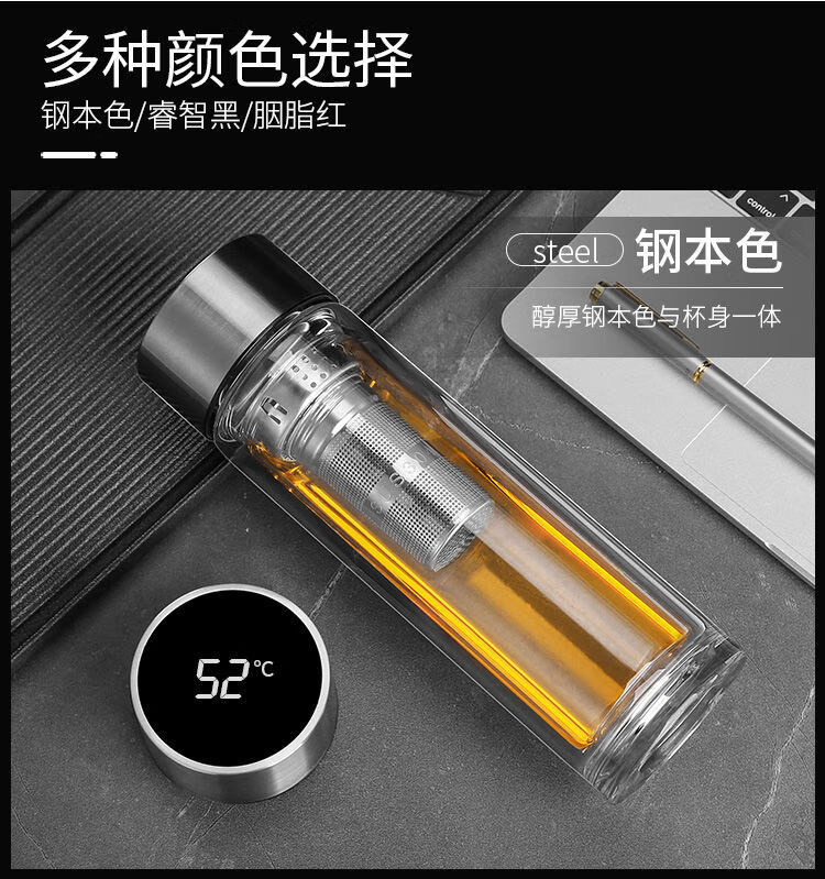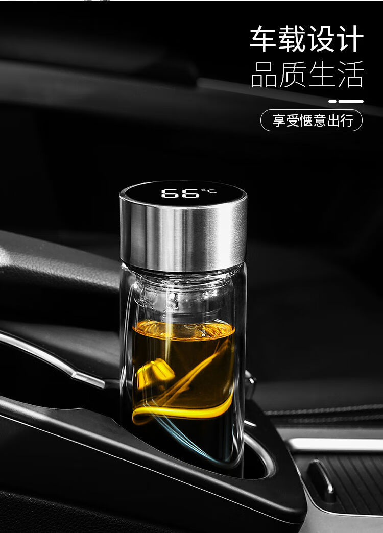 DEATKN双层玻璃杯带盖高档测温专用便携杯特厚全自动家用大容量水杯男 杯子 1ml 450ML钢测温