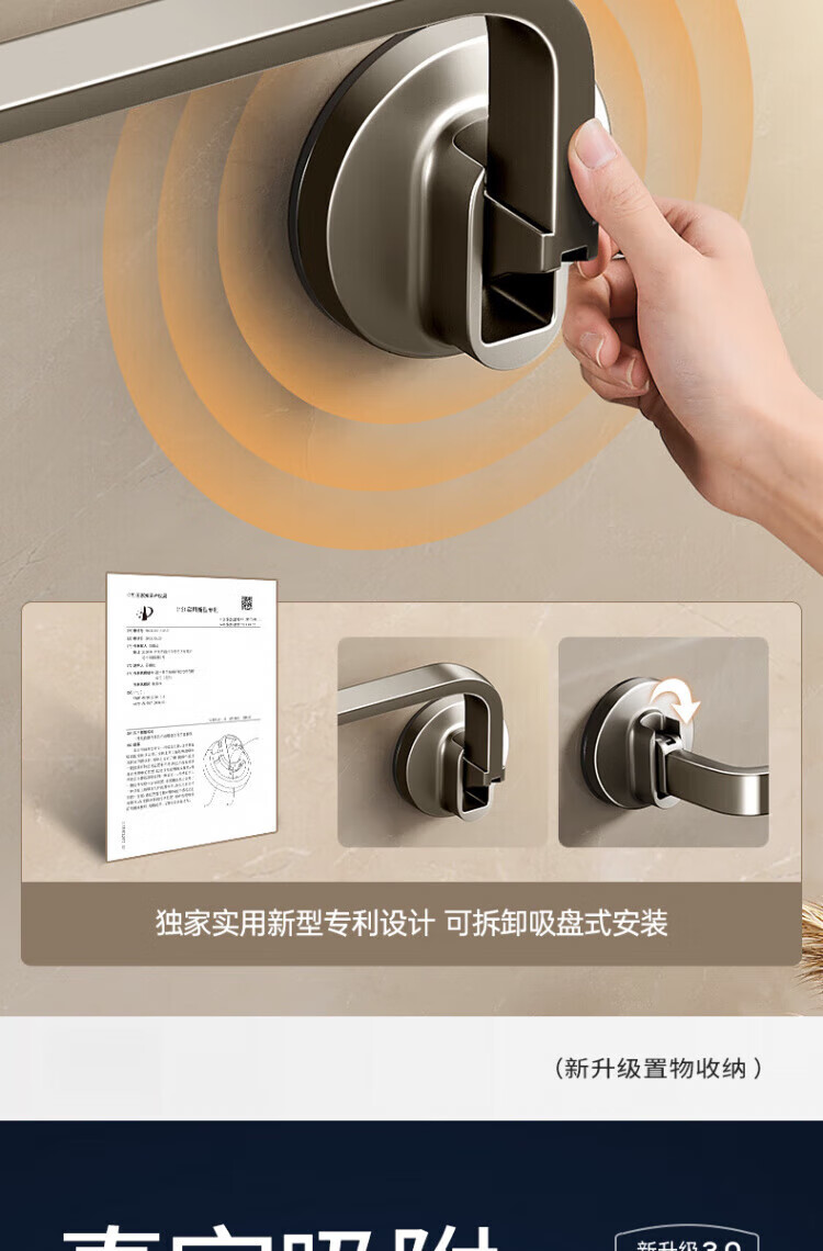 WCZ德国吸盘毛巾架子卫生间免打孔枪灰浴室毛巾杆收纳置物挂架壁挂双 【枪灰单杆】40CM|强劲吸附