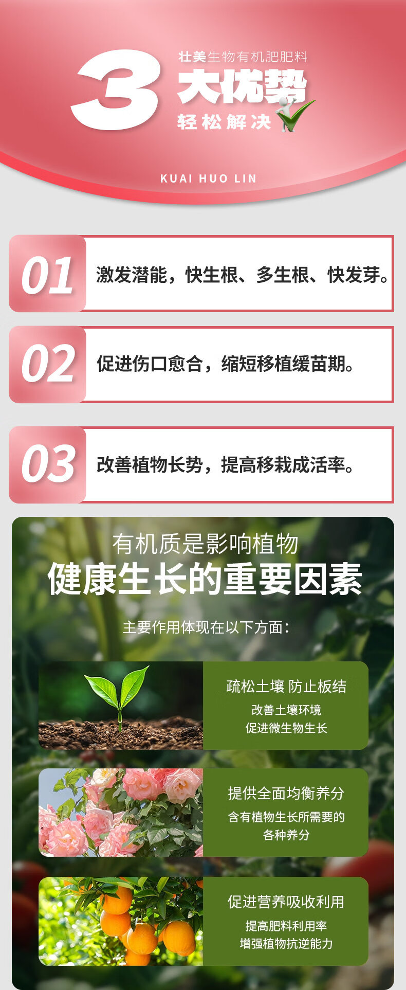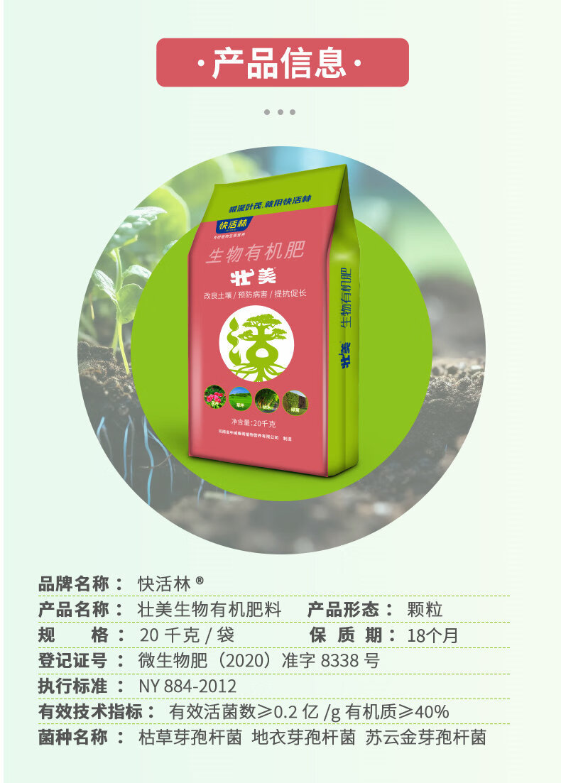 快活林壮美生物有机肥园林草坪苗圃花卉植物改良土壤培破除板结多菌肥料