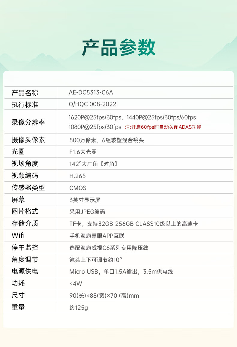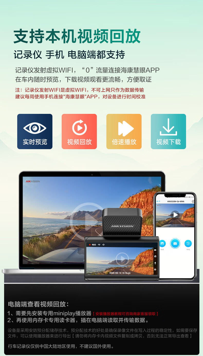 HIKVISION海康威视行车记录仪C6A 3K超清黑光夜视60帧高速防抖不拖影AI声控