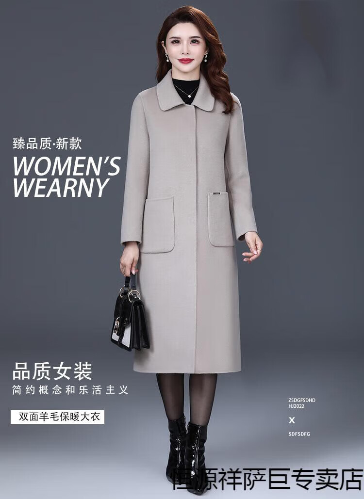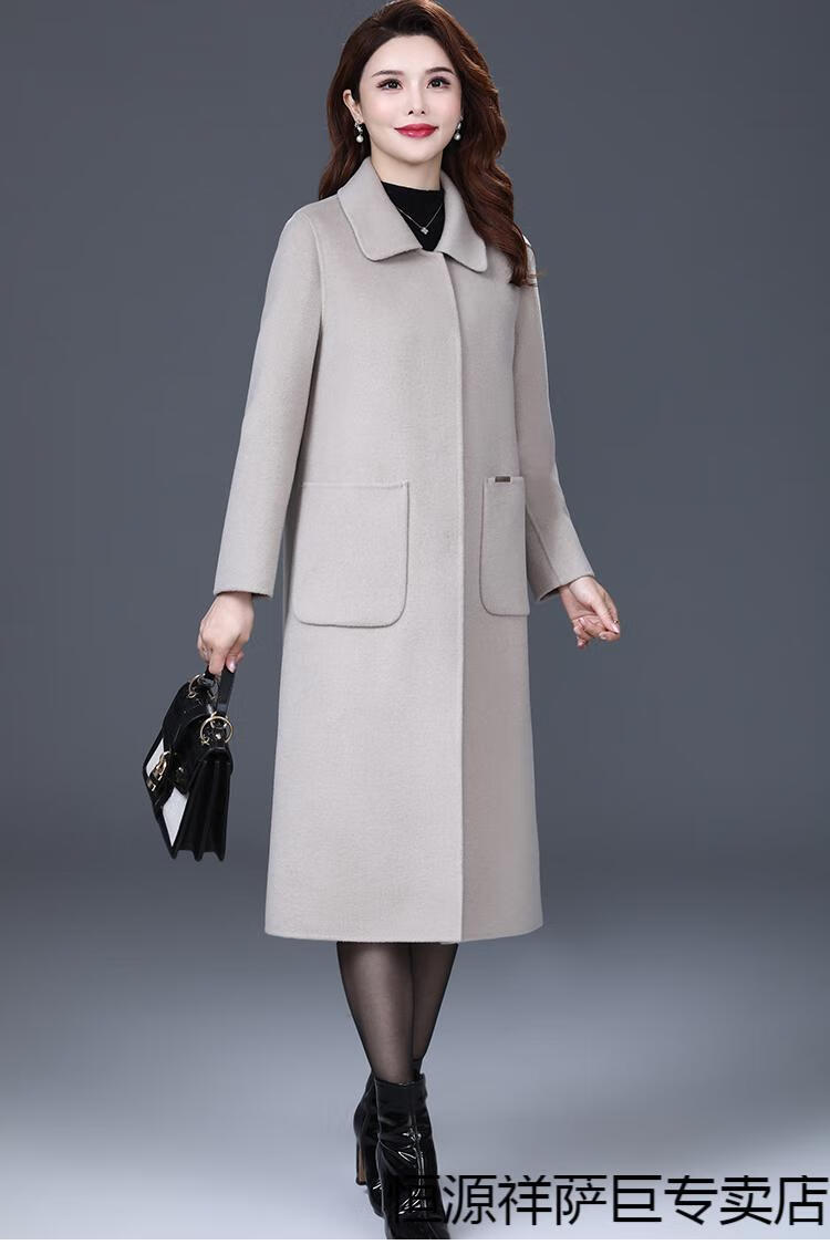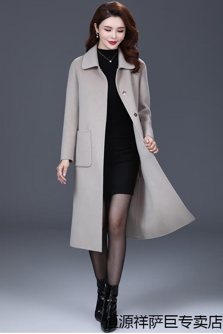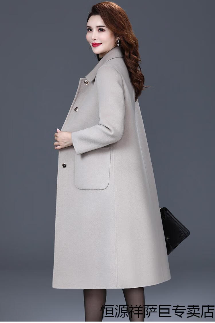 恒源祥高端双面羊毛大衣女中长款2025秋冬新款中年过膝羊毛羊绒呢子外套 靓米灰 XL 建议120斤以下穿