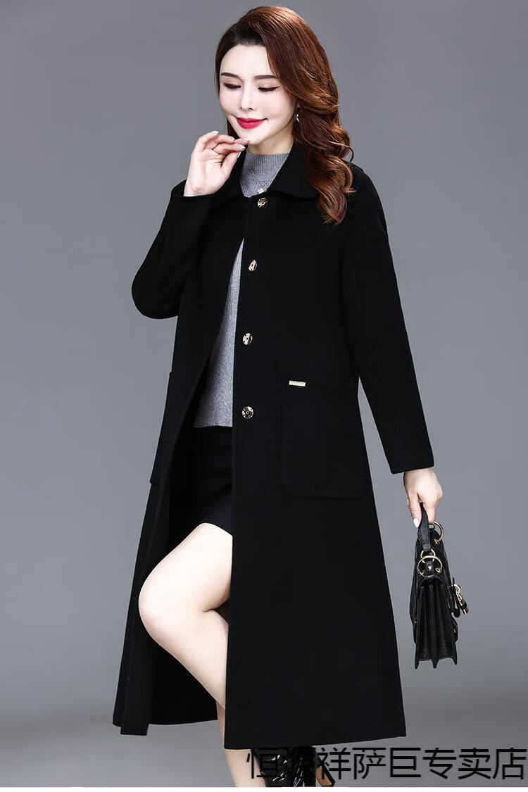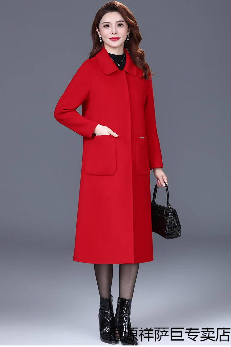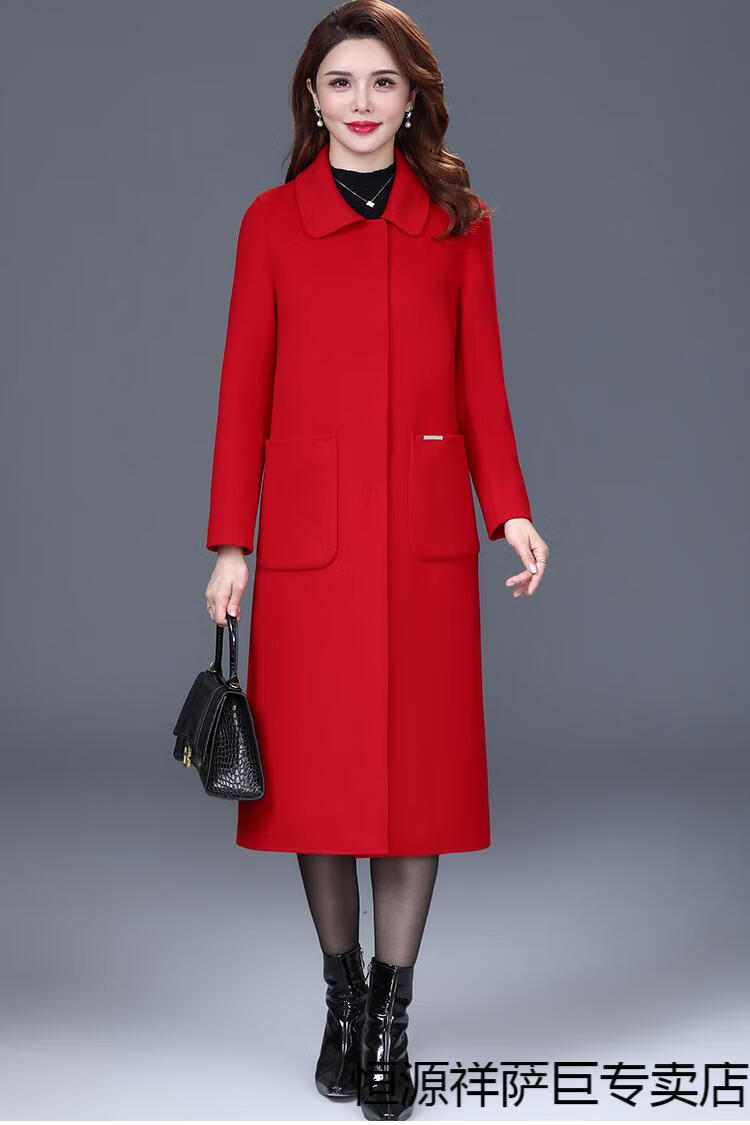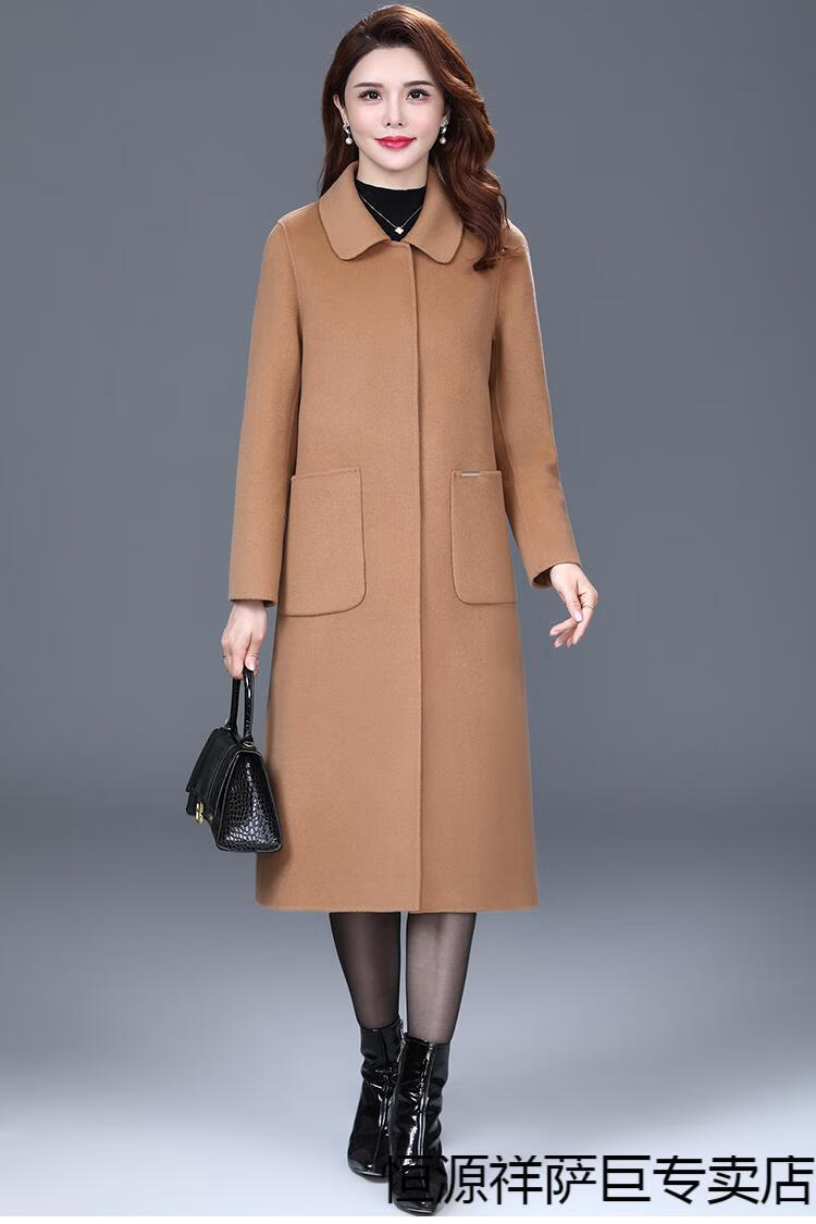 恒源祥高端双面羊毛大衣女中长款2025秋冬新款中年过膝羊毛羊绒呢子外套 靓米灰 XL 建议120斤以下穿