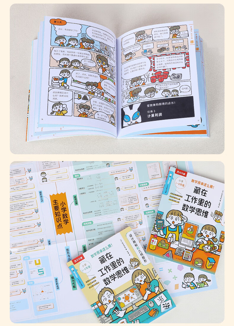 乐乐趣小学生数学思维漫画书6-12岁童书傲游猫入园准备互动立体翻翻书2-5岁幼儿宝宝书籍儿童情商培养成长故事绘本书 官方正版 小学生数学思维漫画2册