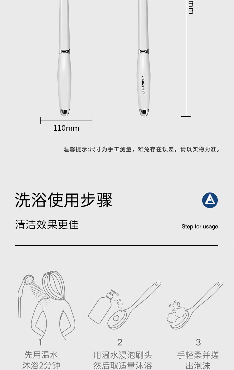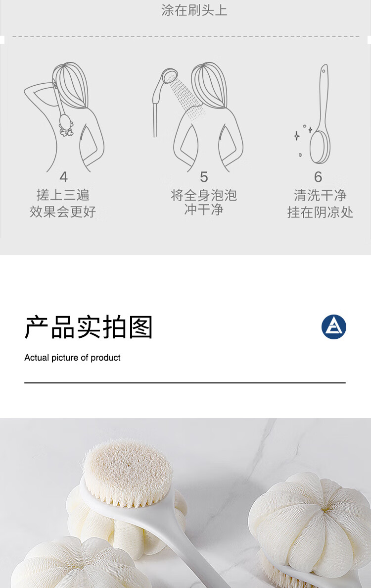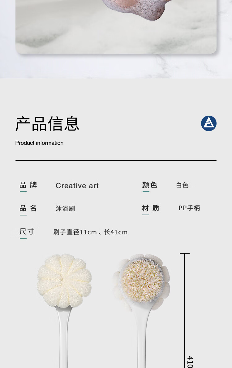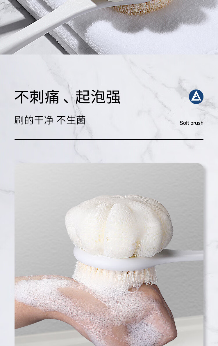 Creative art洗澡刷搓背刷洗澡搓澡神器后背沐浴球浴花身体沐浴刷长柄软毛1个